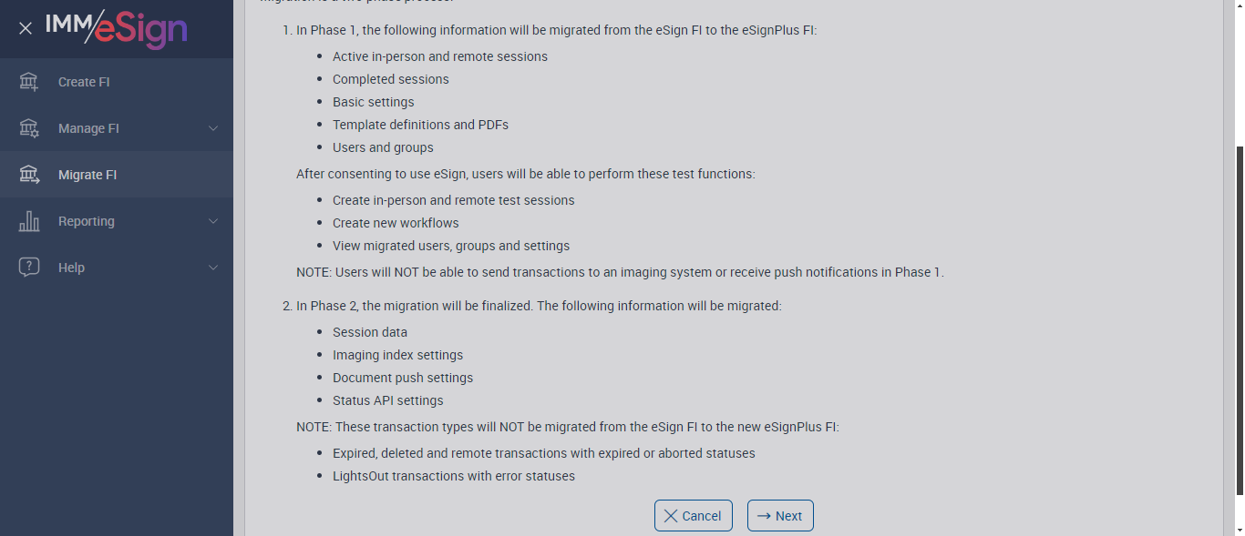 sessionHeading Migrate Session Data and Other Details to Finalize Migration |