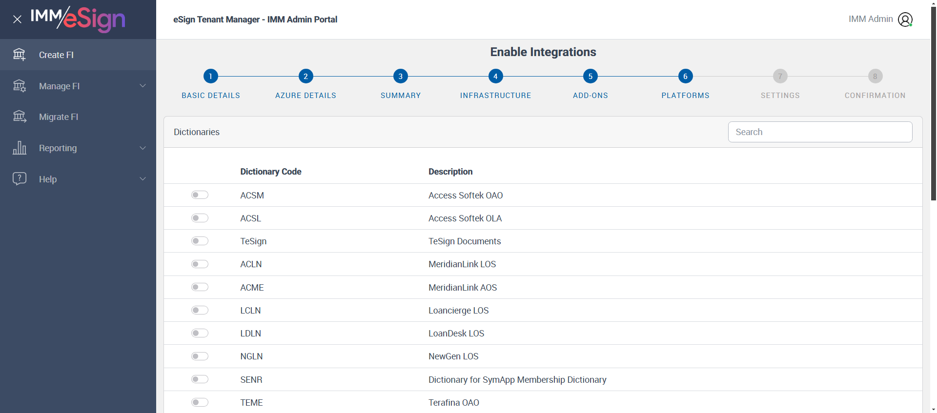 ({ZIP=, Dictionary=TeSign;XPLN;MSP, Description=Verify Migrate FI AddOns Page - PartnerAdmin, Login_User_ID=PartnerAdmin1@immesignqa.onmicrosoft.com, Platform=, ShortName=, Filepath=, Name=AU, LocalDomain=immtestcu, TestID=verifyCloudToCloudFinalMigration, Dictionary Code=, LoggedInUser=Partner Admin, createdFIStatus=, Notes=, Session URL=https://partners.immesign.com/tenantmanagerui/, GlobalAdmin=cuadmin@immtestcu.onmicrosoft.com, eSign URL=, TypeOfUser=Partner Admin, ErrorMsg=, Address2=, AZDomain=immtestcu.onmicrosoft.com, Address3=, FI_ID=AutoTestFI, Address1=, City=, Dictionary Description=, Logo=, NameDescription=, WrongAZDomain=, Tab=, State=, Login_Password=iMM@2022, FullName=, Country=, Dictionaries To Be Select=, ButtonToClick=, FIID=AU})