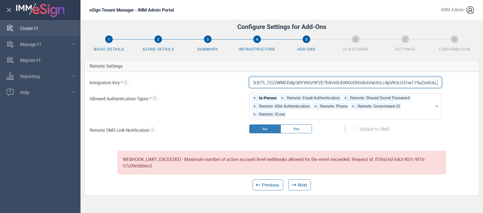 ({ZIP=, Dictionary=TeSign;XPLN;MSP, Description=verify Cloud To Cloud Final Migration FI for adobeSMS and ID Me, Login_User_ID=IMMAdmin@immpartners.onmicrosoft.com, Platform=, ShortName=, Filepath=, Name=ID, LocalDomain=immtestcu, TestID=verifyCloudToCloudFinalMigrationFiForAdobeSMSandIDMe, Dictionary Code=, LoggedInUser=IMM Admin, createdFIStatus=, Notes=, Session URL=https://partners.immesign.com/tenantmanagerui/, GlobalAdmin=cuadmin@immtestcu.onmicrosoft.com, eSign URL=, TypeOfUser=IMM Admin2, ErrorMsg=, Address2=, AZDomain=immtestcu.onmicrosoft.com, Address3=, FI_ID=AutoTestFI, Address1=, City=, Dictionary Description=, Logo=, NameDescription=, WrongAZDomain=, Tab=, State=, Login_Password=Baxu003107, FullName=, Country=, Dictionaries To Be Select=, ButtonToClick=, FIID=ID})