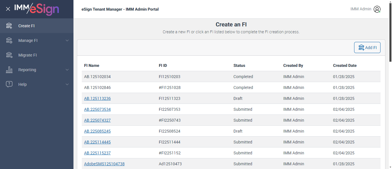 Manage FI title displayed in 'Manage FI' page [ScreenShot]