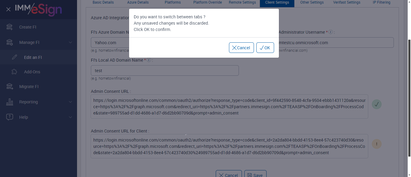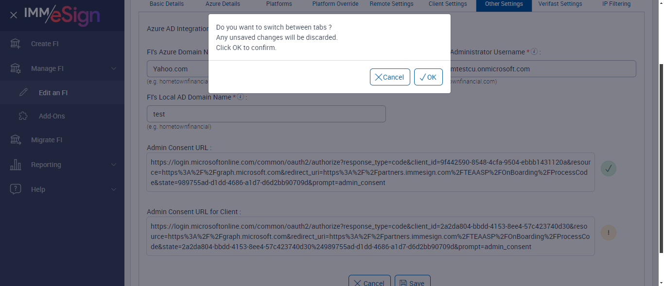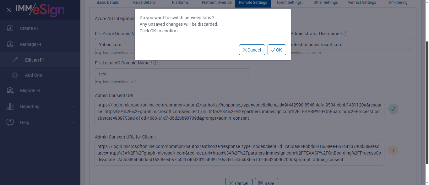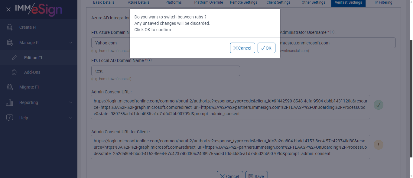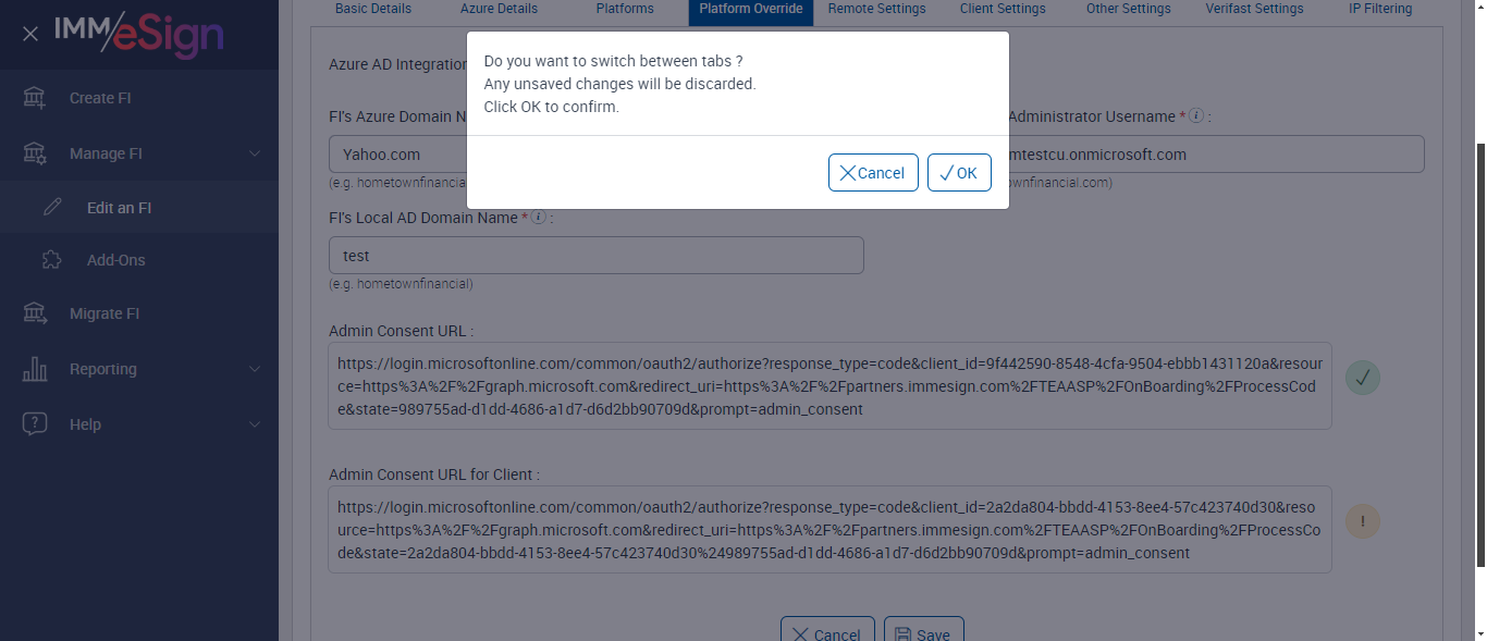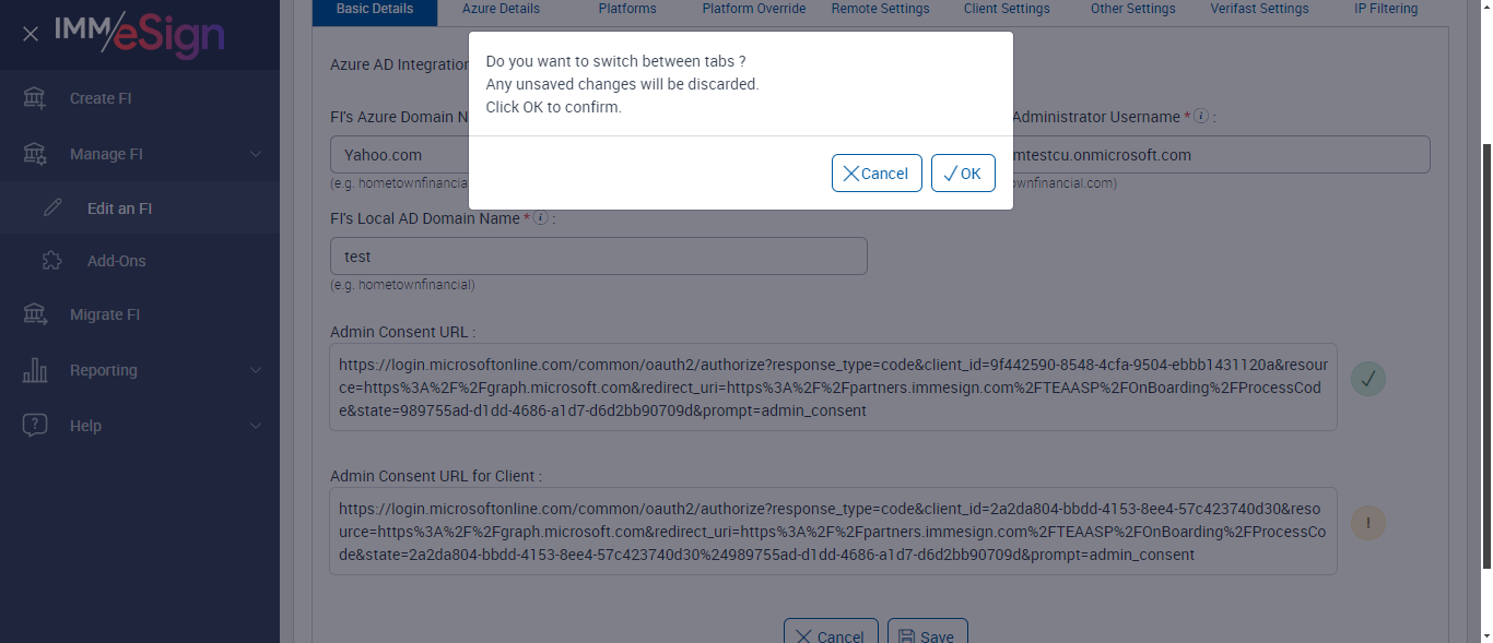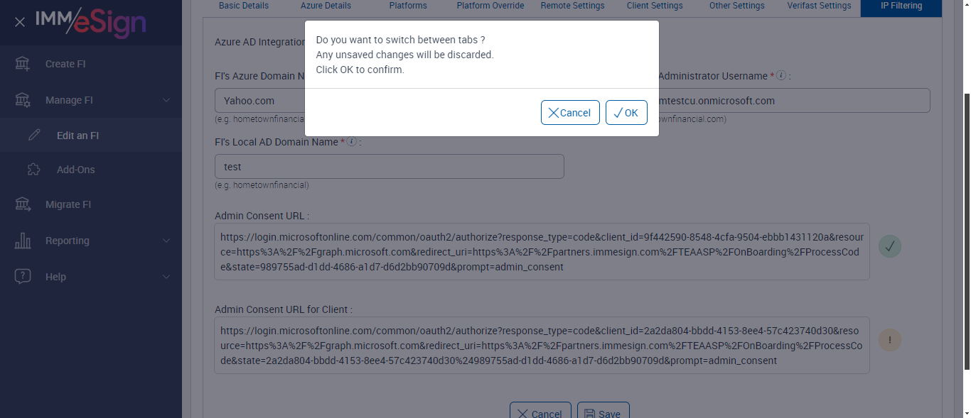 ({ZIP=, Description=Verify Switching Between Tabs from Azure Details Tab, Login_User_ID=IMMAdmin@immpartners.onmicrosoft.com, Platform=, ShortName=, Filepath=, Name=, LocalDomain=immtestcu, TestID=verifySwitchingBetweenTabsFromAzureDetailsTabs, Dictionary Code=, createdFIStatus=, Notes=, Session URL=https://partners.immesign.com/tenantmanagerui/, GlobalAdmin=test;test@123;admintestfi.com;cuadmin@immstestu.onmicrosoft.com, eSign URL=https://esignplusqa.immesign.com/teaasp/login.aspx, New Column=test;test@123;admintestfi.com;admin@yahoo.com, TypeOfUser=HostAdmin, ErrorMsg=FI Id already exists;Must be up to 10 characters with no spaces and special characters.;Must be up to 10 characters with no spaces and special characters.;;, Address2=, AZDomain=yahoo.com, Address3=, FI_ID=AutoeSign, Address1=, City=, Dictionary Description=, Logo=, NameDescription=, WrongAZDomain=Test;hometown.com;yahoo.com, Tab=Basic Details,Azure Details,Platforms,Platform Override,Remote Settings,Client Settings,Other Settings,Verifast Settings,IP Filtering, State=, Login_Password=Baxu003107, FullName=, Country=, Dictionaries To Be Select=, ButtonToClick=, FIID=})