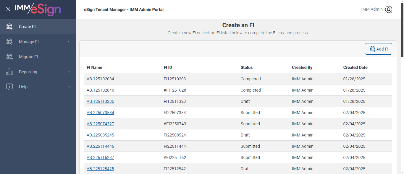 Successfully navigated to 'Manage FI' page [ScreenShot]