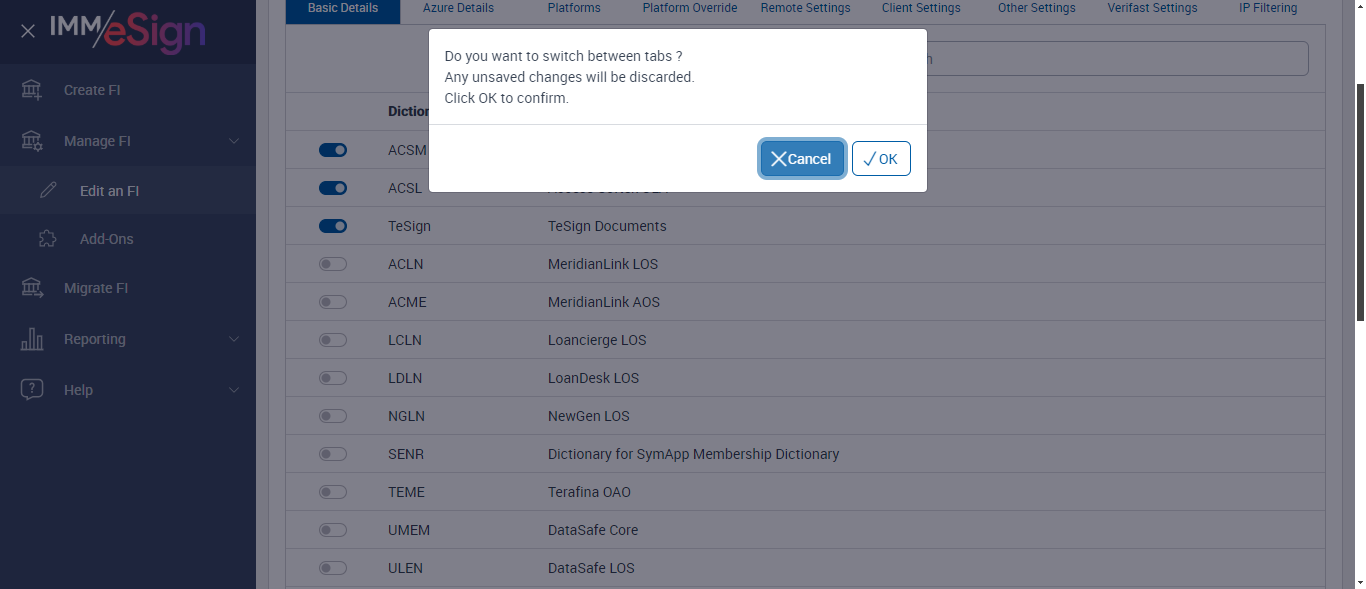 (Verify Swithing between Tabs in Platforms tab ManageFI Page)
