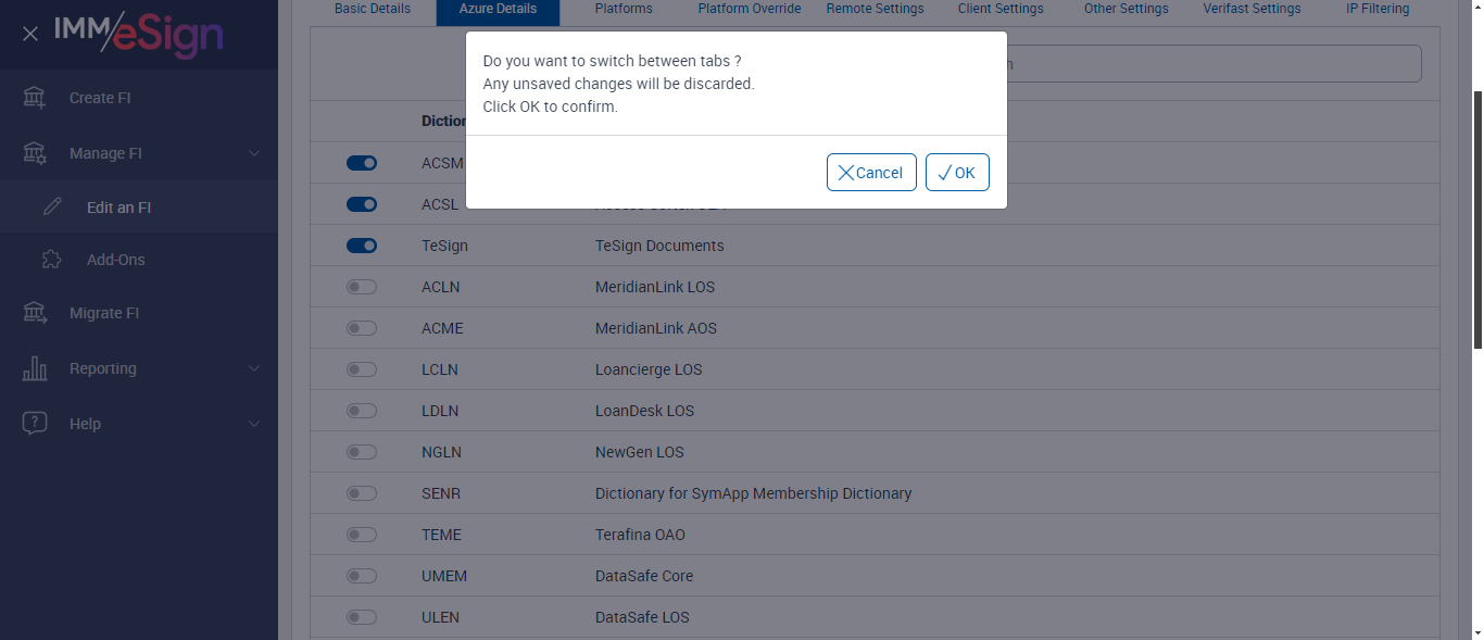 ({ZIP=0756, Description=Verify Swithing between Tabs in Platforms tab ManageFI Page, Login_User_ID=IMMAdmin@immpartners.onmicrosoft.com, Platform=, ShortName=, Filepath=, Name=AUTest, LocalDomain=test, TestID=verifySwitchingBetweenTabsinPlatformsTab, Dictionary Code=, createdFIStatus=, Notes=Test, Session URL=https://partners.immesign.com/tenantmanagerui/, GlobalAdmin=, eSign URL=, New Column=test;test@123;admintestfi.com;admin@yahoo.com, TypeOfUser=HostAdmin, ErrorMsg=FI Id already exists;Must be up to 10 characters with no spaces and special characters.;Must be up to 10 characters with no spaces and special characters.;;, Address2=building 1, AZDomain=yahoo.com, Address3=123, FI_ID=AutoeSign, Address1=2 City hall Plaza, City=Rahway, Dictionary Description=, Logo=, NameDescription=, WrongAZDomain=Test;hometown.com;yahoo.com, Tab=, State=NJ, Login_Password=Baxu003107, FullName=, Country=USA, Dictionaries To Be Select=, ButtonToClick=, FIID=espxml;Test Fi;Fi&2;ABCDCompany})