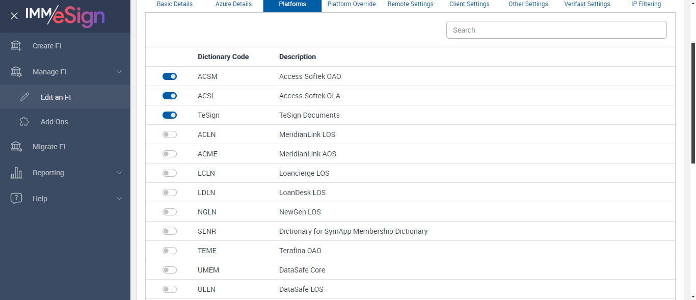 FI Search Option Displayed in 'Manage FI' page [ScreenShot]