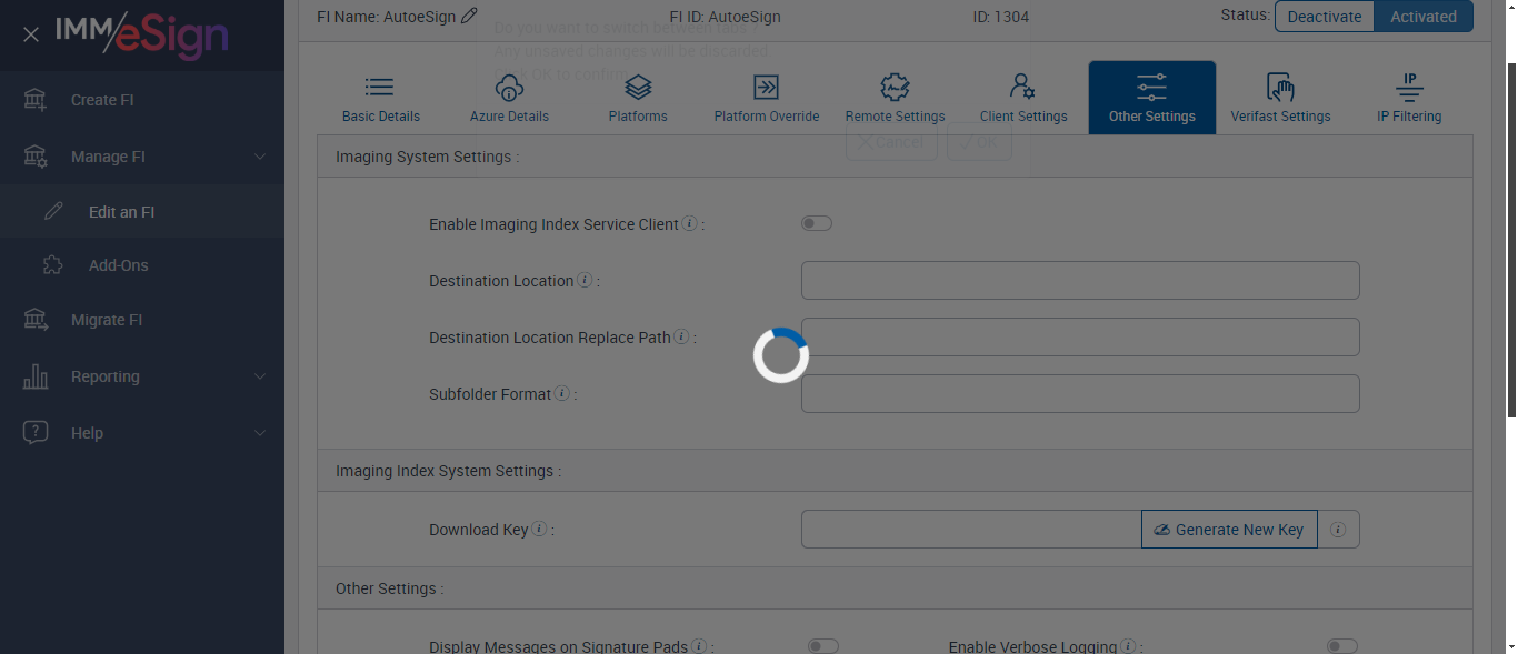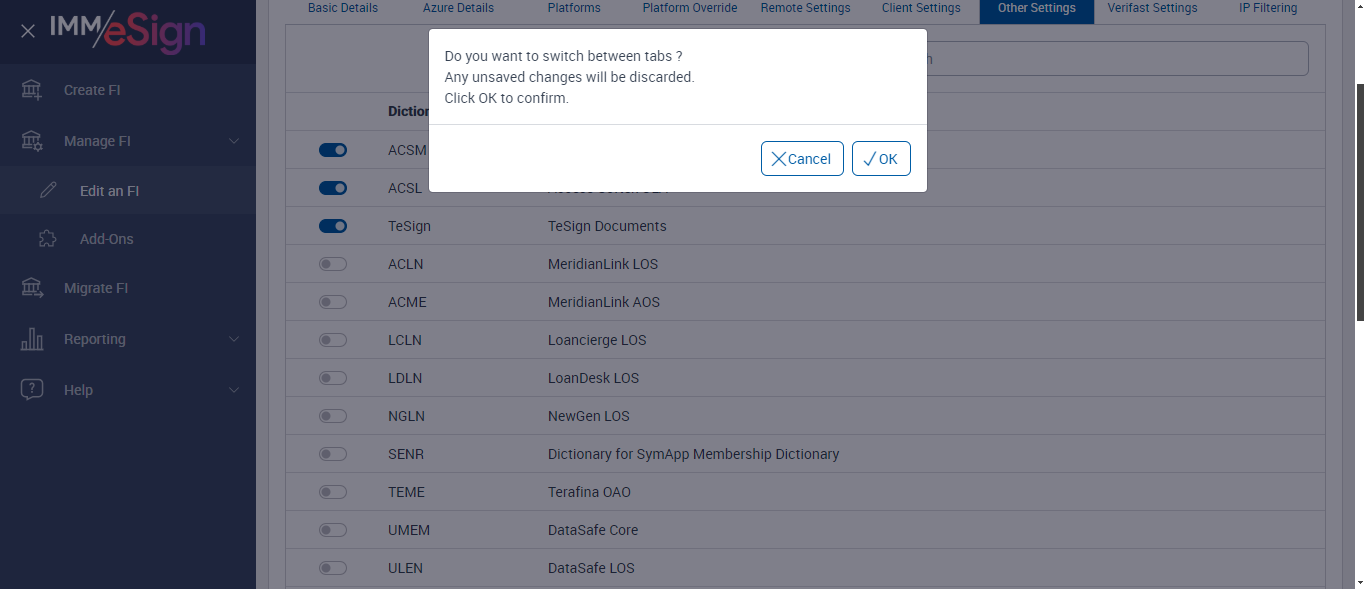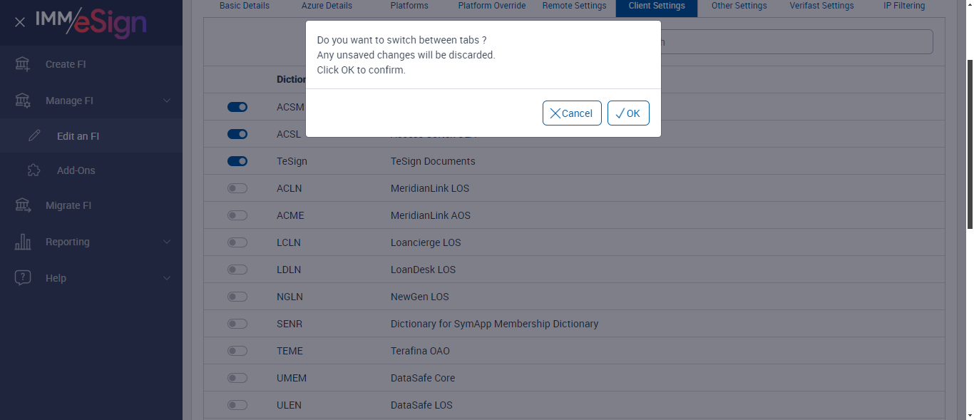 verifySwitchingBetweenFIsinClientSettingsTab