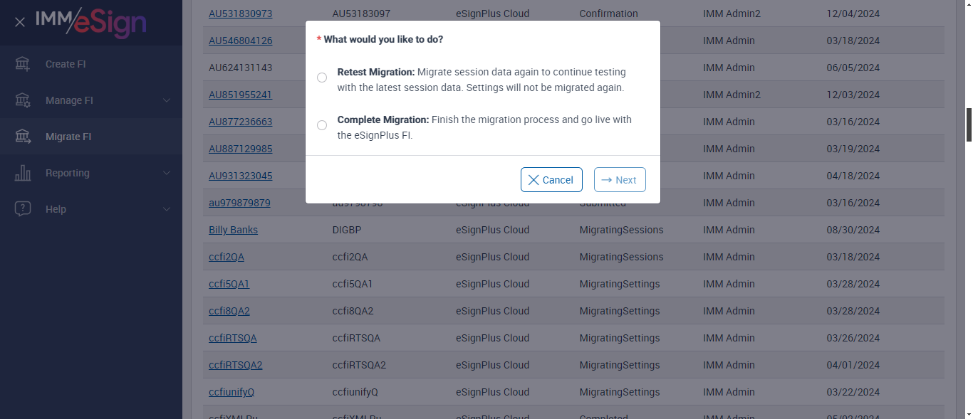 | {ZIP=, Dictionary=TeSign;XPLN;MSP, Description=verify that Manage FI display messages while migration is in progress for eSign and eSignPlus FI, Login_User_ID=immadmin2@immesignqa.onmicrosoft.com, Platform=, ShortName=, Filepath=, Name=AU, LocalDomain=cuadmin, TestID=verifyManageFIMessageforeSignAndPlusFI, Dictionary Code=, LoggedInUser=IMM Admin2, createdFIStatus=, Notes=, Session URL=https://esignnonprod.immesign.com/qa/tenantmanager/, GlobalAdmin=cuadmin@immtestcu.onmicrosoft.com, eSign URL=, TypeOfUser=IMM Admin2, ErrorMsg=, Address2=, AZDomain=immtestcu.onmicrosoft.com, Address3=, FI_ID=AutoTestFI, Address1=, City=, Dictionary Description=, Logo=, NameDescription=, WrongAZDomain=, Tab=, State=, Login_Password=iMM@2022, FullName=, Country=, Dictionaries To Be Select=, ButtonToClick=, FIID=AU} |