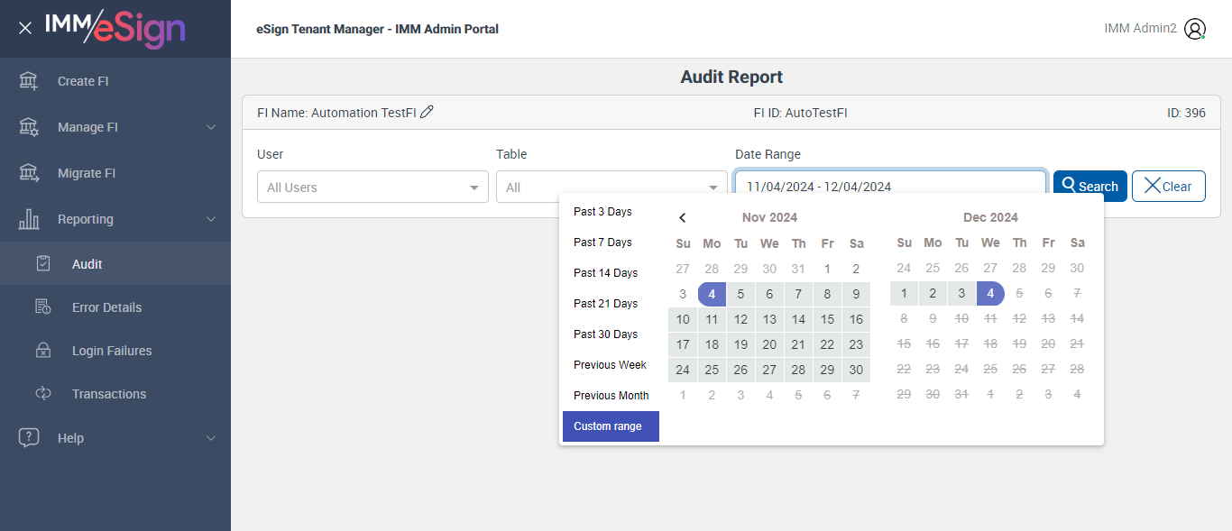 --- 04 Dec 20:10:34 033 - Page URL:: https://esignnonprod.immesign.com/qa/tenantmanager/#/fi/reporting/audit