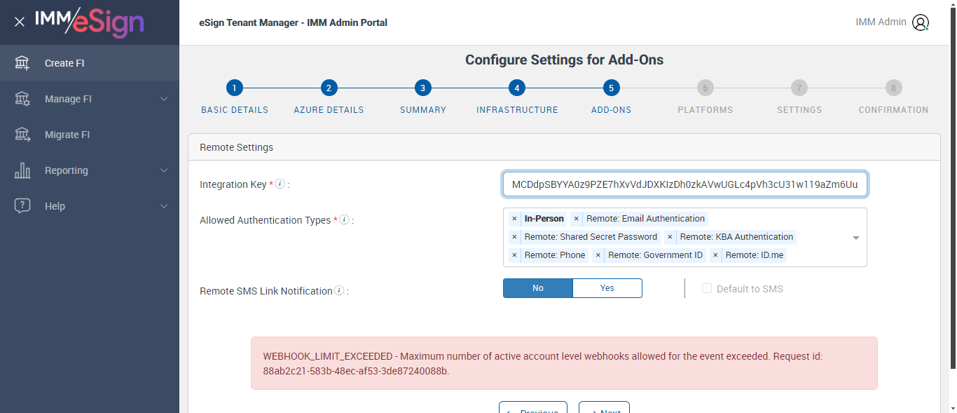 ({ZIP=, Dictionary=tesign;xp, StarterEvalDays=, Description=Create Fi With RemoteSign, Login_User_ID=IMMAdmin@immpartners.onmicrosoft.com, FiStatus=Completed, StarterChecks=Off, eSignURL=https://partners.immesign.com/teaasp/login.aspx, E-Vault=Off, Filepath=, Name=AB., LocalDomain=cuadmin, TestID=CreateFiwithAndWithoutRemoteSign, Verifast=Off, eSignPlus=Off, LacerPro=Enable, RtmAuthTypes=InPerson,Email,Password,KBA,Phone,GovernmentID, Notes=, Session URL=https://partners.immesign.com/tenantmanagerui/, GlobalAdmin=cuadmin@immtestcu.onmicrosoft.com, RemoteSign=Enable, TypeOfUser=IMM Admin2, eValultDays=, DrpSpot=Off, ErrorMsg=, Address2=, AZDomain=immtestcu.onmicrosoft.com, Address3=, VerifastEDays=, Address1=, City=, WrongAZDomain=, LCEvalDays=, State=, LoanCoupon=Off, Login_Password=Baxu003107, WrongFIID=, DrpEvalDays=, Country=, ClientID=3AAABLblqZhCPfuU-npiCakOjy5Ut75_7222WMCDdpSBYYA0z9PZE7hXvVdJDXKIzDh0zkAVwUGLc4pVh3cU31w119aZm6Uu_, FIID=#FI, Key=})