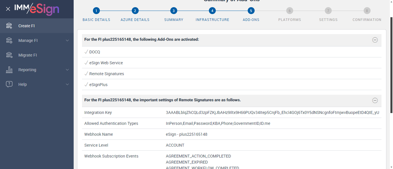 ({ZIP=08867, Dictionary=TeSign;XPLN, StarterEvalDays=, Description=Create New eSignPlus FI, Login_User_ID=IMMAdmin@immpartners.onmicrosoft.com, FiStatus=Submitted, StarterChecks=Off, eSignURL=, E-Vault=Off, Filepath=, Name=plus, LocalDomain=immtestcu, TestID=createeSignPlusFI, Verifast=Off, eSignPlus=On, LacerPro=Enable, RtmAuthTypes=, Notes=Test, Session URL=https://partners.immesign.com/tenantmanagerui/, GlobalAdmin=cuadmin@immtestcu.onmicrosoft.com, RemoteSign=Off, TypeOfUser=IMM Admin2, eValultDays=, DrpSpot=Off, ErrorMsg=, Address2=building 1, AZDomain=immtestcu.onmicrosoft.com, Address3=123, VerifastEDays=, Address1=2 City hall Plaza, City=Rahway, WrongAZDomain=, LCEvalDays=, State=NJ, LoanCoupon=Off, Login_Password=Baxu003107, WrongFIID=, DrpEvalDays=, Country=USA, ClientID=12223456asv_, FIID=Plus, Key=fc8deac2-73e5-4e9e-8a13-4a7a93161f11})