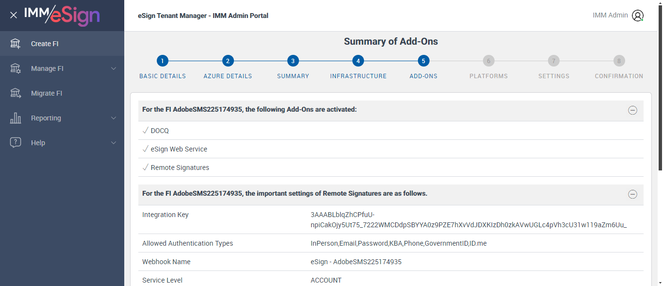 ({ZIP=08867, Dictionary=TeSign;XPLN, StarterEvalDays=, Description=Create New FI Default SMS - IMM Admin, Login_User_ID=IMMAdmin@immpartners.onmicrosoft.com, FiStatus=Submitted, StarterChecks=Off, eSignURL=, E-Vault=Off, Filepath=, Name=AdobeSMS, LocalDomain=immtestcu, TestID=verifycreateNewFIDefaultSMS, Verifast=Off, eSignPlus=Off, LacerPro=Enable, RtmAuthTypes=, Notes=Test, Session URL=https://partners.immesign.com/tenantmanagerui/, GlobalAdmin=cuadmin@immtestcu.onmicrosoft.com, RemoteSign=Off, TypeOfUser=IMM Admin, eValultDays=, DrpSpot=Off, ErrorMsg=, Address2=building 1, AZDomain=immtestcu.onmicrosoft.com, Address3=123, VerifastEDays=, Address1=2 City hall Plaza, City=Rahway, WrongAZDomain=, LCEvalDays=, State=NJ, LoanCoupon=Off, Login_Password=Baxu003107, WrongFIID=, DrpEvalDays=, Country=USA, ClientID=12223456asv_, FIID=Ad, Key=Test123})