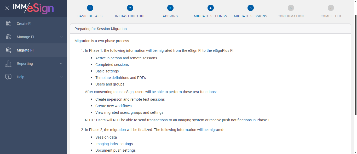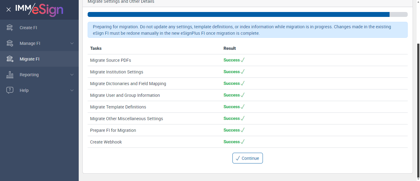 Successfully navigated to 'Migrate FI' page [ScreenShot]
