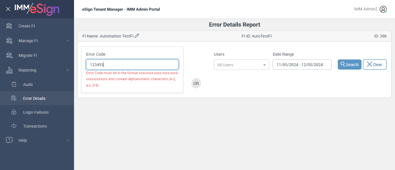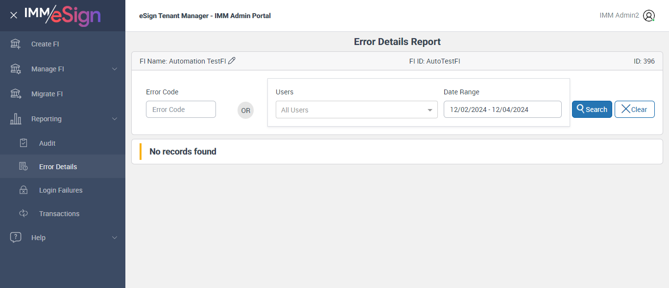 --- 05 Dec 12:04:50 182 - Page URL:: https://esignnonprod.immesign.com/qa/tenantmanager/#/fi/reporting/error-details