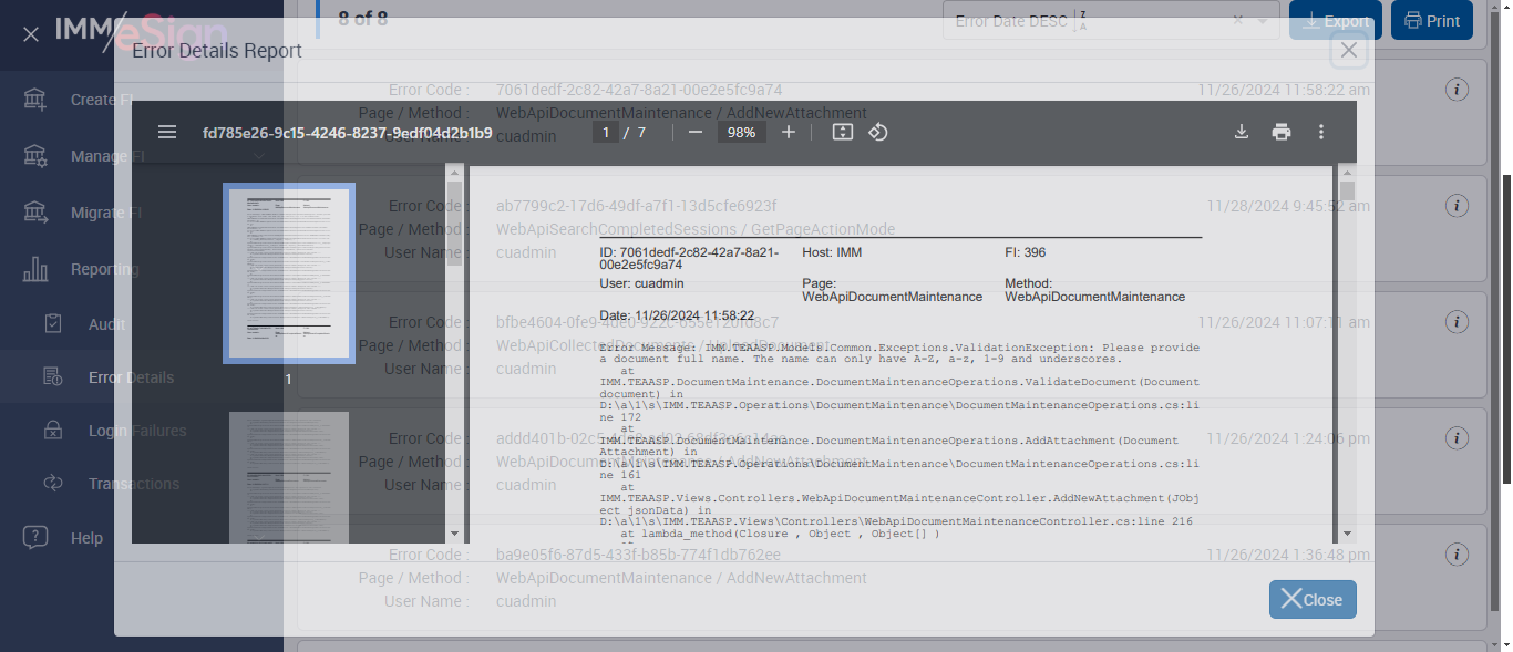 verifyErrorDetailsReport({Description=Verify Error Details report, Login_User_ID=immadmin2@immesignqa.onmicrosoft.com, dateRa...)