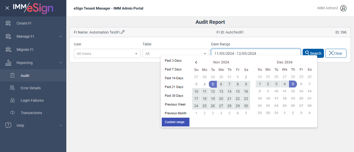 --- 05 Dec 17:16:04 256 - Page URL:: https://esignnonprod.immesign.com/qa/tenantmanager/#/fi/reporting/audit