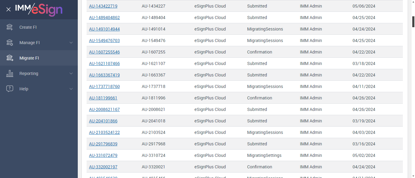 Used to communicate with the eSign server from the client application. Financial Institution's Name.