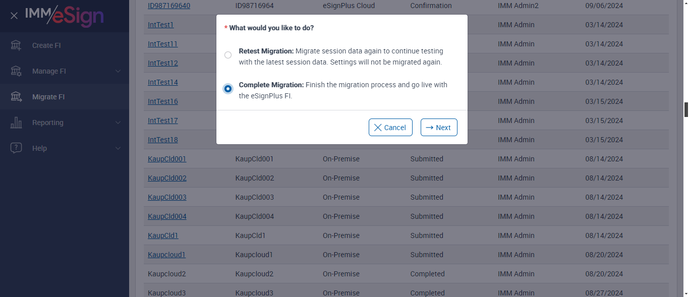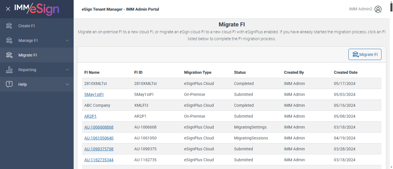 Successfully navigated to 'Migrate FI' page [ScreenShot]