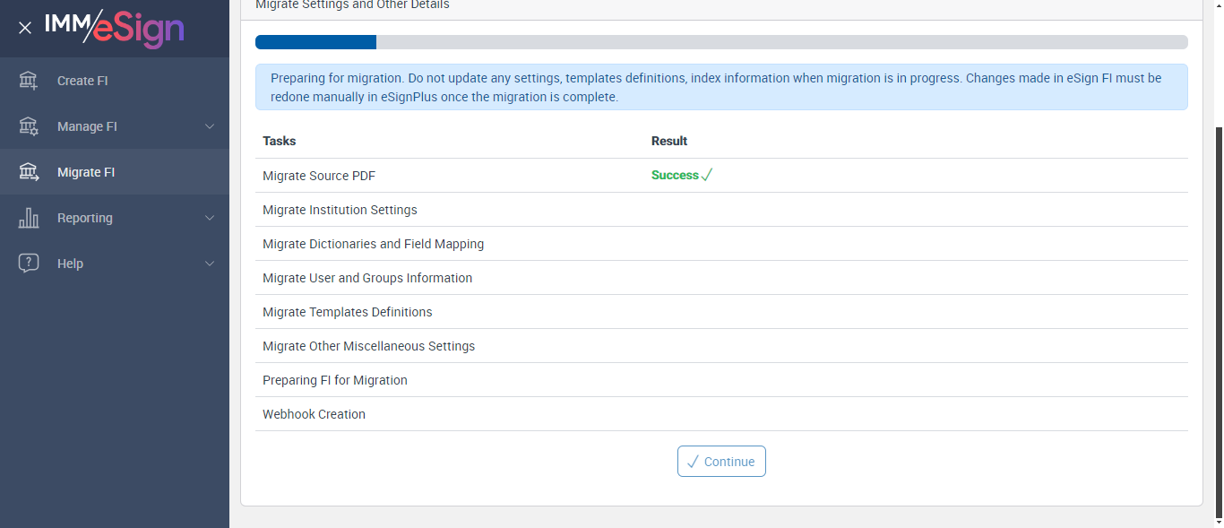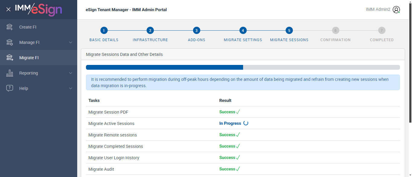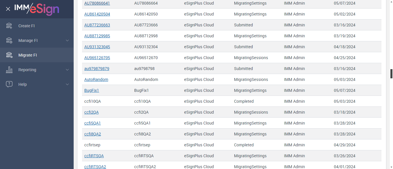 Used to communicate with the eSign server from the client application., , , This is meant for saving extra notes about the Financial Institution., Financial Institution's address., Financial Institution's address (contd.), Financial Institution's address (contd.), , Financial Institution's State., ] * * FI ID * : equals FI ID * : Name * : equals Name * : Logo : equals Logo : Notes : equals Notes : Address 1 : equals Address 1 : Address 2 : equals Address 2 : Address 3 : equals Address 3 : City : equals City : State : equals State : ZIP : equals ZIP : Country : equals Country : Successfully validated Basic Details labels [ScreenShot] ...........Migration - Infrastructure Page.............. --- 07 May 16:48:49 579 - Element is displayed:: [[RemoteWebDriver: chrome on Windows 10 (27fd31d854c4c2b50507b720b42794b4)] -> id: btnNext] --- 07 May 16:48:51 885 - Page URL:: https://esignnonprod.immesign.com/qa/tenantmanager/#/fi/migrate/basic --- 07 May 16:48:51 885 - 0 - Page Load Wait: (Sync) - com.imm.support.Utils.waitForPageLoad(Utils.java:136) --- 07 May 16:48:51 967 - Page URL:: https://esignnonprod.immesign.com/qa/tenantmanager/#/fi/migrate/basic --- 07 May 16:48:51 967 - 0 - Page Load Wait: (Sync) - com.imm.support.Utils.waitForPageLoad(Utils.java:136) --- 07 May 16:48:53 213 - Element is displayed:: [[RemoteWebDriver: chrome on Windows 10 (27fd31d854c4c2b50507b720b42794b4)] -> xpath: //*[contains(text(),'Configure Infrastructure')]] --- 07 May 16:48:53 272 - Page URL:: https://esignnonprod.immesign.com/qa/tenantmanager/#/fi/migrate/infrastructure --- 07 May 16:48:53 272 - 0 - Page Load Wait: (Sync) - com.imm.support.Utils.waitForPageLoad(Utils.java:136) --- 07 May 16:48:53 350 - Element is displayed:: [[RemoteWebDriver: chrome on Windows 10 (27fd31d854c4c2b50507b720b42794b4)] -> css selector: .header] Successfully navigated to the 'InfrastructurePage' page [ScreenShot] --- 07 May 16:48:53 623 - Element is displayed:: [[RemoteWebDriver: chrome on Windows 10 (27fd31d854c4c2b50507b720b42794b4)] -> id: infraMessage] Verified Configuration message Continue button is disabled Found Result for Setting up the Database - Success [ScreenShot] Successfully Configured 'Setting up the Databse' FoundResult for Configuring the FI Database -Success [ScreenShot] Successfully Configured 'Configuring the FI Database' Found Result for Running Post Deployment ScriptsSuccess [ScreenShot] Successfully Configured 'Running Post Deployment Scripts' Found Result for Creating FI SettingsSuccess [ScreenShot] Successfully Configured 'Creating FI Settings' Found Result fotr Creating folders in Azure file storageSuccess [ScreenShot] Successfully Configured 'Creating folders in Azure file storage' Found Result for Scheduling JobsSuccess [ScreenShot] Successfully Configured 'Scheduling Jobs' Retry Button is not showing --- 07 May 16:52:38 111 - Element is displayed:: [[RemoteWebDriver: chrome on Windows 10 (27fd31d854c4c2b50507b720b42794b4)] -> id: btnCompleteInfra] --- 07 May 16:52:45 220 - Element is displayed:: [[RemoteWebDriver: chrome on Windows 10 (27fd31d854c4c2b50507b720b42794b4)] -> id: btnCompleteInfra] --- 07 May 16:52:45 287 - Element is displayed:: [[RemoteWebDriver: chrome on Windows 10 (27fd31d854c4c2b50507b720b42794b4)] -> id: btnCompleteInfra] --- 07 May 16:52:45 449 - Page URL:: https://esignnonprod.immesign.com/qa/tenantmanager/#/fi/migrate/addons --- 07 May 16:52:45 449 - 0 - Page Load Wait: (Sync) - com.imm.support.Utils.waitForPageLoad(Utils.java:136) --- 07 May 16:52:45 516 - Element is displayed:: [[RemoteWebDriver: chrome on Windows 10 (27fd31d854c4c2b50507b720b42794b4)] -> id: step_title] --- 07 May 16:52:45 600 - Page URL:: https://esignnonprod.immesign.com/qa/tenantmanager/#/fi/migrate/addons --- 07 May 16:52:45 600 - 0 - Page Load Wait: (Sync) - com.imm.support.Utils.waitForPageLoad(Utils.java:136) --- 07 May 16:52:45 675 - Element is displayed:: [[RemoteWebDriver: chrome on Windows 10 (27fd31d854c4c2b50507b720b42794b4)] -> css selector: .header] Clicked 'Next' button .......Migration - Add-Ons Page.......... --- 07 May 16:52:45 750 - Page URL:: https://esignnonprod.immesign.com/qa/tenantmanager/#/fi/migrate/addons --- 07 May 16:52:45 750 - 0 - Page Load Wait: (Sync) - com.imm.support.Utils.waitForPageLoad(Utils.java:136) --- 07 May 16:52:45 801 - Element is displayed:: [[RemoteWebDriver: chrome on Windows 10 (27fd31d854c4c2b50507b720b42794b4)] -> id: step_title] --- 07 May 16:52:45 880 - Page URL:: https://esignnonprod.immesign.com/qa/tenantmanager/#/fi/migrate/addons --- 07 May 16:52:45 881 - 0 - Page Load Wait: (Sync) - com.imm.support.Utils.waitForPageLoad(Utils.java:136) --- 07 May 16:52:45 951 - Element is displayed:: [[RemoteWebDriver: chrome on Windows 10 (27fd31d854c4c2b50507b720b42794b4)] -> css selector: .header] Successfully navigated to the 'Add-Ons Page' page [ScreenShot] --- 07 May 16:52:46 224 - Page URL:: https://esignnonprod.immesign.com/qa/tenantmanager/#/fi/migrate/addons --- 07 May 16:52:46 224 - 0 - Page Load Wait: (Sync) - com.imm.support.Utils.waitForPageLoad(Utils.java:136) --- 07 May 16:52:48 488 - Page URL:: https://esignnonprod.immesign.com/qa/tenantmanager/#/fi/migrate --- 07 May 16:52:48 488 - 0 - Page Load Wait: (Sync) - com.imm.support.Utils.waitForPageLoad(Utils.java:136) --- 07 May 16:52:51 902 - Page URL:: https://esignnonprod.immesign.com/qa/tenantmanager/#/fi/migrate --- 07 May 16:52:51 902 - 0 - Page Load Wait: (Sync) - com.imm.support.Utils.waitForPageLoad(Utils.java:136) --- 07 May 16:52:51 956 - Element is displayed:: [[RemoteWebDriver: chrome on Windows 10 (27fd31d854c4c2b50507b720b42794b4)] -> id: createdFIList] --- 07 May 16:52:52 006 - Element is displayed:: [[RemoteWebDriver: chrome on Windows 10 (27fd31d854c4c2b50507b720b42794b4)] -> id: btnMigrateFI] Migrate FI Page open up [ScreenShot] --- 07 May 16:52:52 486 - Page URL:: https://esignnonprod.immesign.com/qa/tenantmanager/#/fi/migrate --- 07 May 16:52:52 486 - 0 - Page Load Wait: (Sync) - com.im