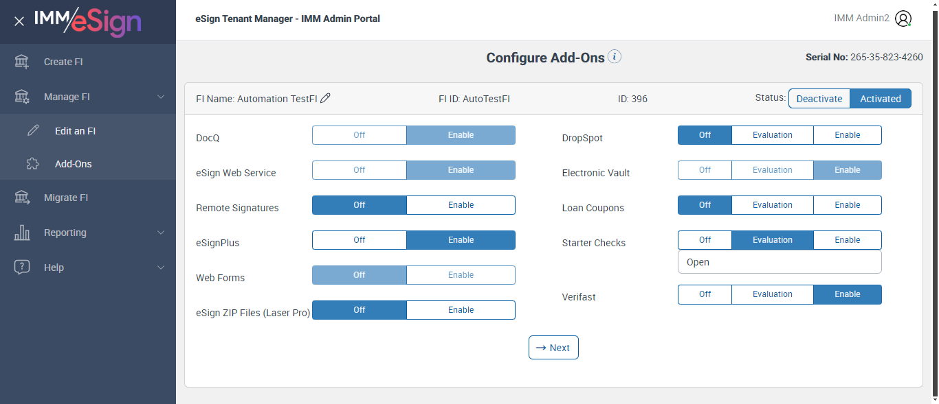 ({ZIP=0756, Description=Verify Addon Page, Login_User_ID=immadmin2@immesignqa.onmicrosoft.com, Platform=, ShortName=, Filepath=, Name=AUTest, LocalDomain=, TestID=VerifyAddonPage, Dictionary Code=TeSign,XPLN,MSP,ACSM,ACSL,LCLN,LDLN,SENR,UMEM,ULEN,ACLN,ACME,OSISSM,CRME,CRLN,SYLN,SYMS,SLEN,NSME, createdFIStatus=Draft, Notes=Test, Session URL=https://esignnonprod.immesign.com/qa/tenantmanager/, GlobalAdmin=, eSign URL=https://esignplusqa.immesign.com/teaasp/login.aspx, New Column=, TypeOfUser=HostAdmin, ErrorMsg=Do you want to discard the changes?,Changes saved successfully., Address2=building 1, AZDomain=, Address3=123, FI_ID=AutoTestFI, Address1=2 City hall Plaza, City=Rahway, Dictionary Description=TeSign Documents,XP2 LOS,XP2 Core,Access Softek OAO,Access Softek OLA,Loancierge LOS,LoanDesk LOS,Dictionary for SymApp Membership Dictionary,DataSafe Core,DataSafe LOS,MeridianLink LOS,MeridianLink AOS,DNA Core,KeyStone Core,KeyStone LOS,Symitar LOS,Symitar Core,Spectrum LOS,Spectrum Core, Logo=, NameDescription=, WrongAZDomain=, Tab=Basic Details,Azure Details,Platforms,Platform Override,Remote Settings,Client Settings,Other Settings,Verifast Settings,IP Filtering, State=NJ, Login_Password=iMM@2022, FullName=, Country=USA, Dictionaries To Be Select=TeSign,XPLN,MSP,ACSM,ACSL,LCLN,LDLN,SENR,UMEM,ULEN,ACLN, ButtonToClick=Cancel, FIID=espRTS,,Test Fi})