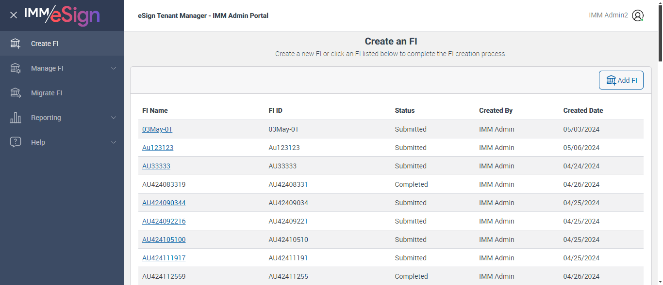 Successfully navigated to 'Create an FI' page [ScreenShot] |