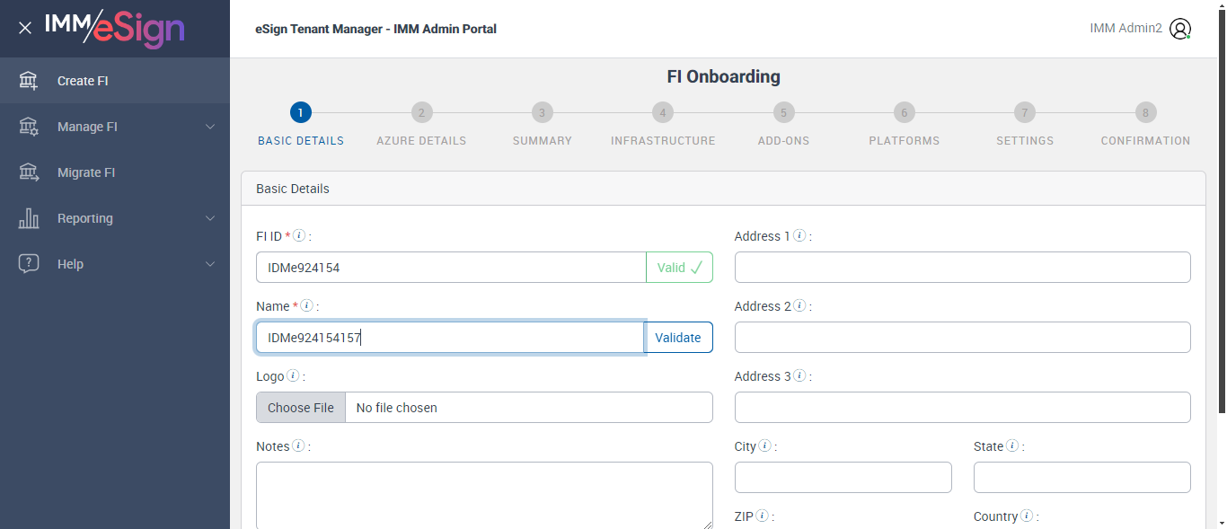 | {ZIP=08867, Dictionary=tesign;xp, StarterEvalDays=, Description=Create New FI without Remote ID Me, Login_User_ID=immadmin2@immesignqa.onmicrosoft.com, FiStatus=Submitted, StarterChecks=Off, eSignURL=https://esignplusqa.immesign.com/TEAASP/Login.aspx, E-Vault=Off, Filepath=, Name=IDMe, LocalDomain=cuadmin, TestID=verifycreateNewFIwithoutRemoteIDMe, Verifast=Off, eSignPlus=Off, LacerPro=Enable, RtmAuthTypes=, Notes=Test, Session URL=https://esignnonprod.immesign.com/qa/tenantmanager/, GlobalAdmin=cuadmin@immtestcu.onmicrosoft.com, RemoteSign=Off, TypeOfUser=IMM Admin2, eValultDays=, DrpSpot=Off, ErrorMsg=, Address2=building 1, AZDomain=immtestcu.onmicrosoft.com, Address3=123, VerifastEDays=, Address1=2 City hall Plaza, City=Rahway, WrongAZDomain=, LCEvalDays=, State=NJ, LoanCoupon=Off, Login_Password=iMM@2022, WrongFIID=, DrpEvalDays=, Country=USA, ClientID=12223456asv_, FIID=IDMe, Key=Test123} |