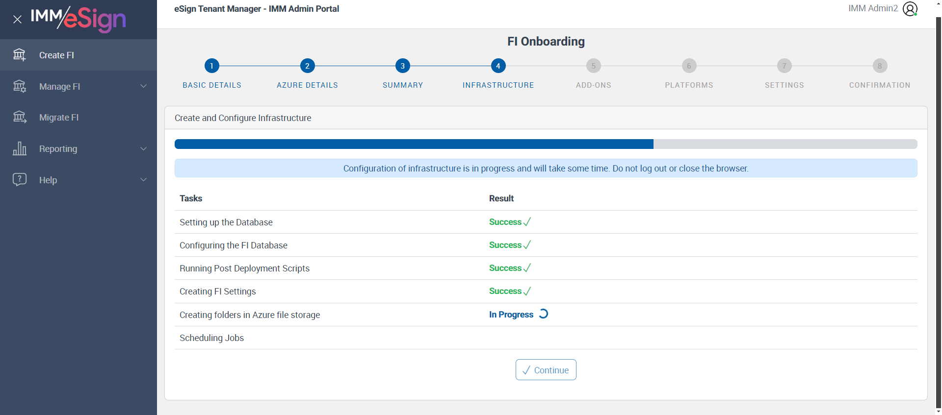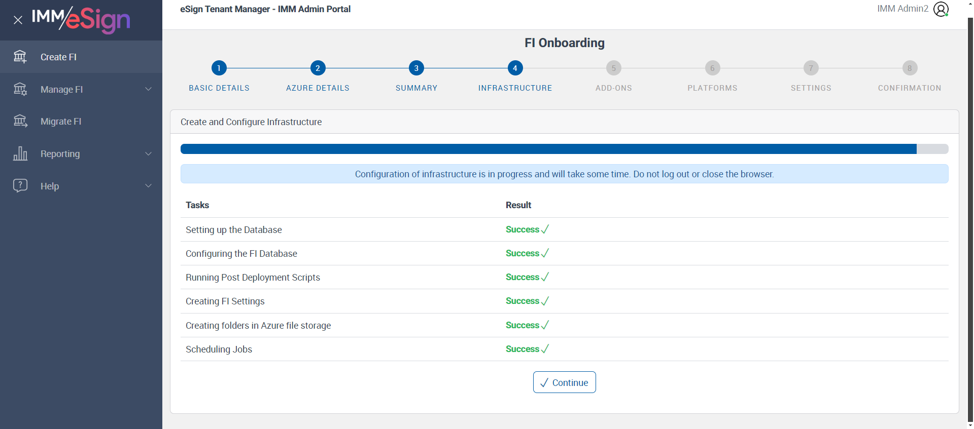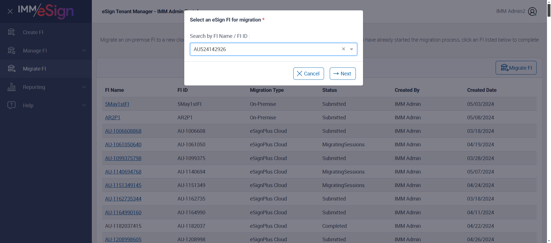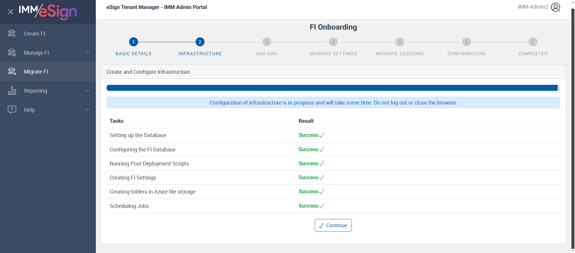| com.imm.testscripts.MigrateFI.MigrateFi | verifyManageFIMessageforeSignAndPlusFI: verify that Manage FI display messages while migration is in progress for eSign and eSignPlus FI | 1715590768967 | 1128405 |
