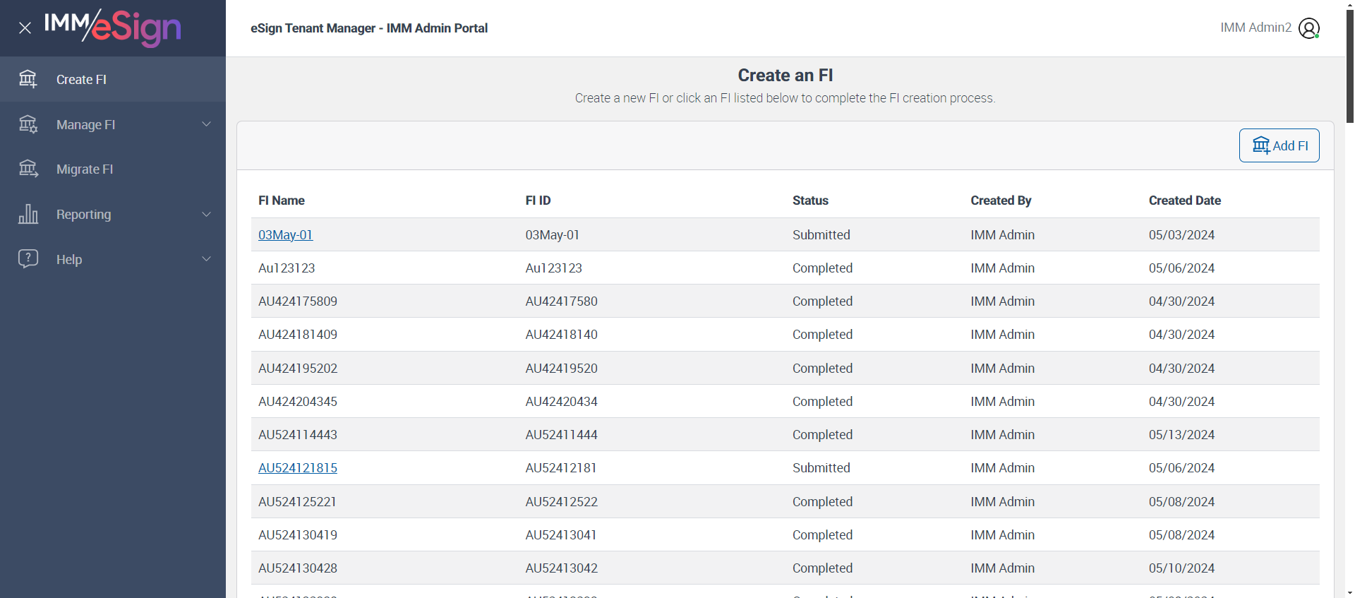 **** verify that Manage FI display messages while migration is in progress for eSign and eSignPlus FI ****