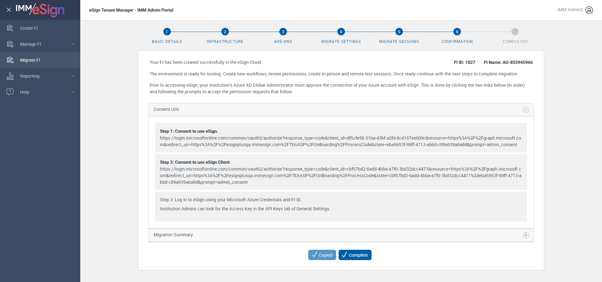 --- 14 May 15:53:36 025 - Page URL:: https://esignnonprod.immesign.com/qa/tenantmanager/#/fi/migrate/complete