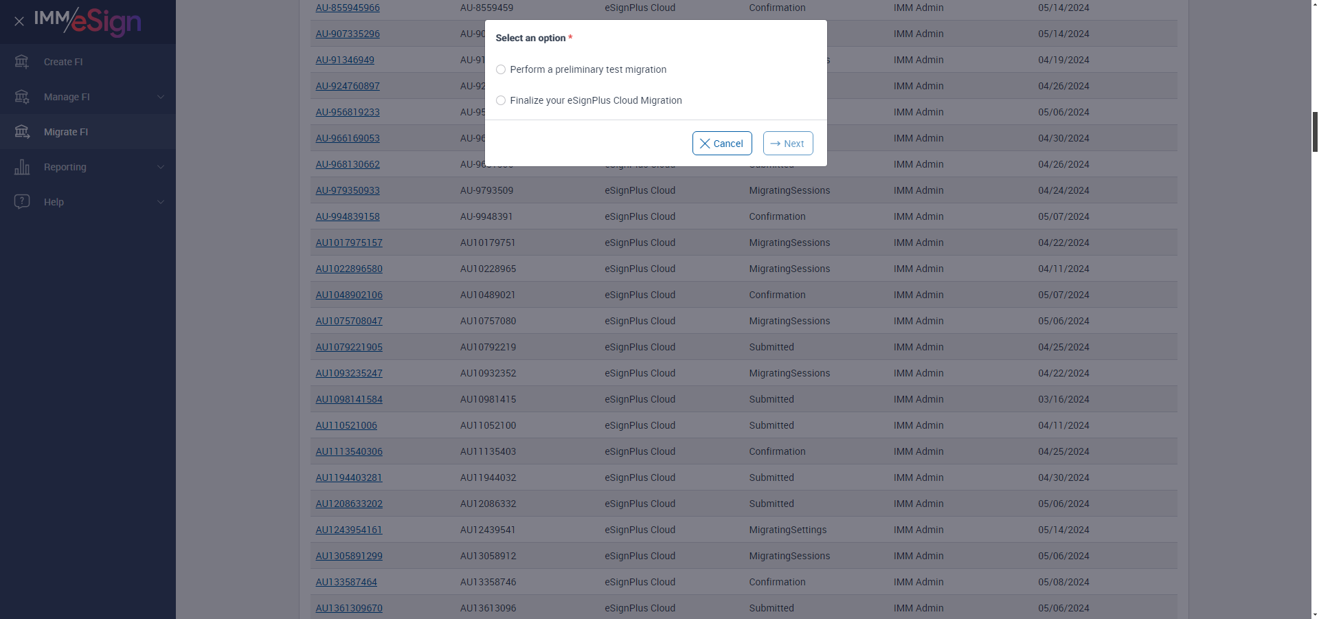 --- 14 May 15:40:52 343 - Page URL:: https://esignnonprod.immesign.com/qa/tenantmanager/#/fi/migrate