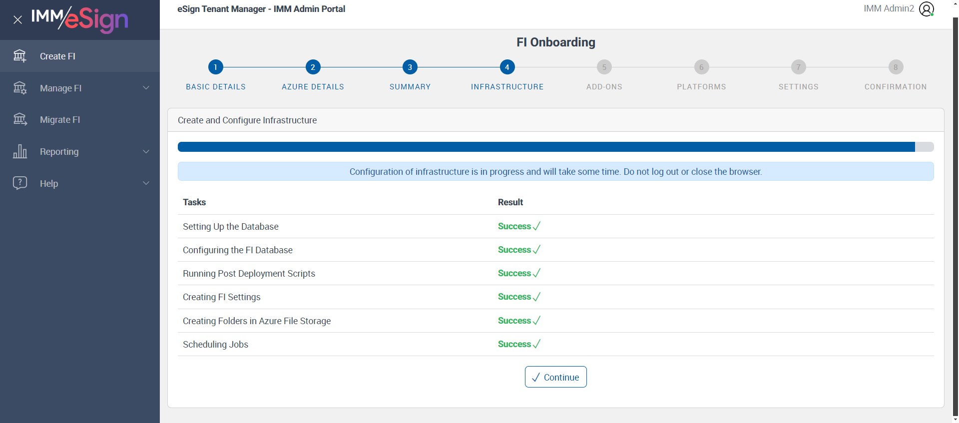 Successfully Configured 'Creating FI Settings'