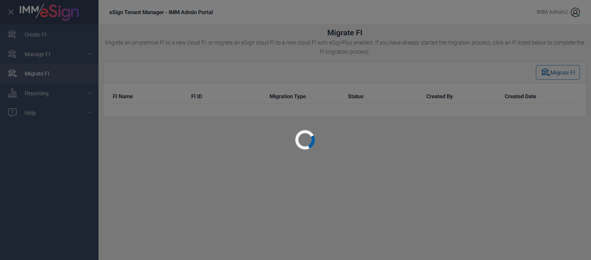**** verify that Manage FI display messages while migration is in progress for eSign and eSignPlus FI ****