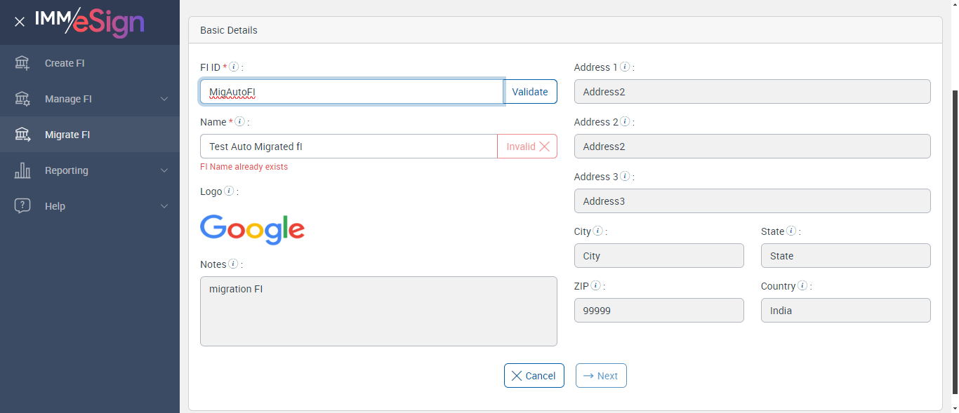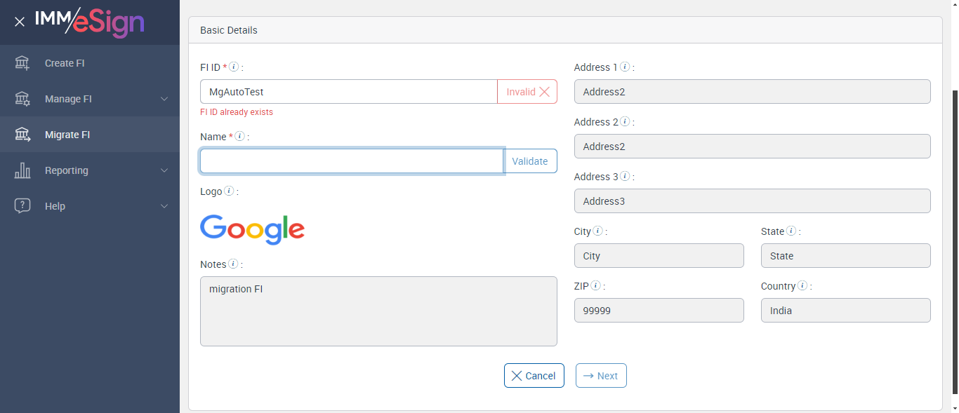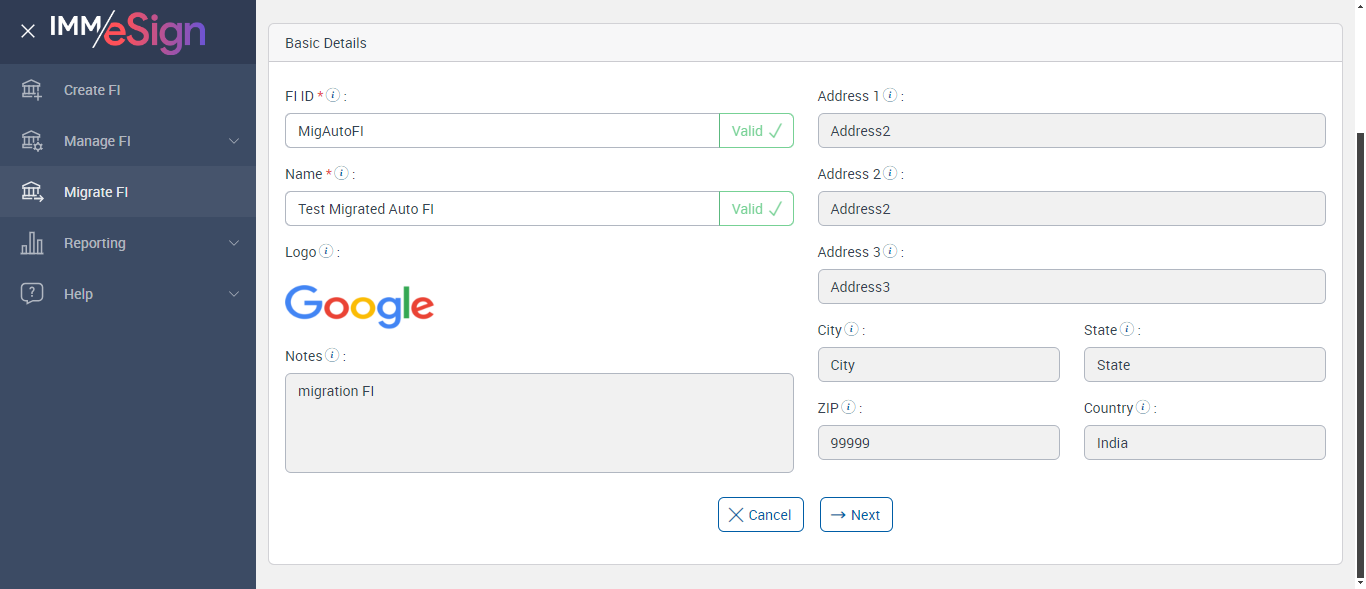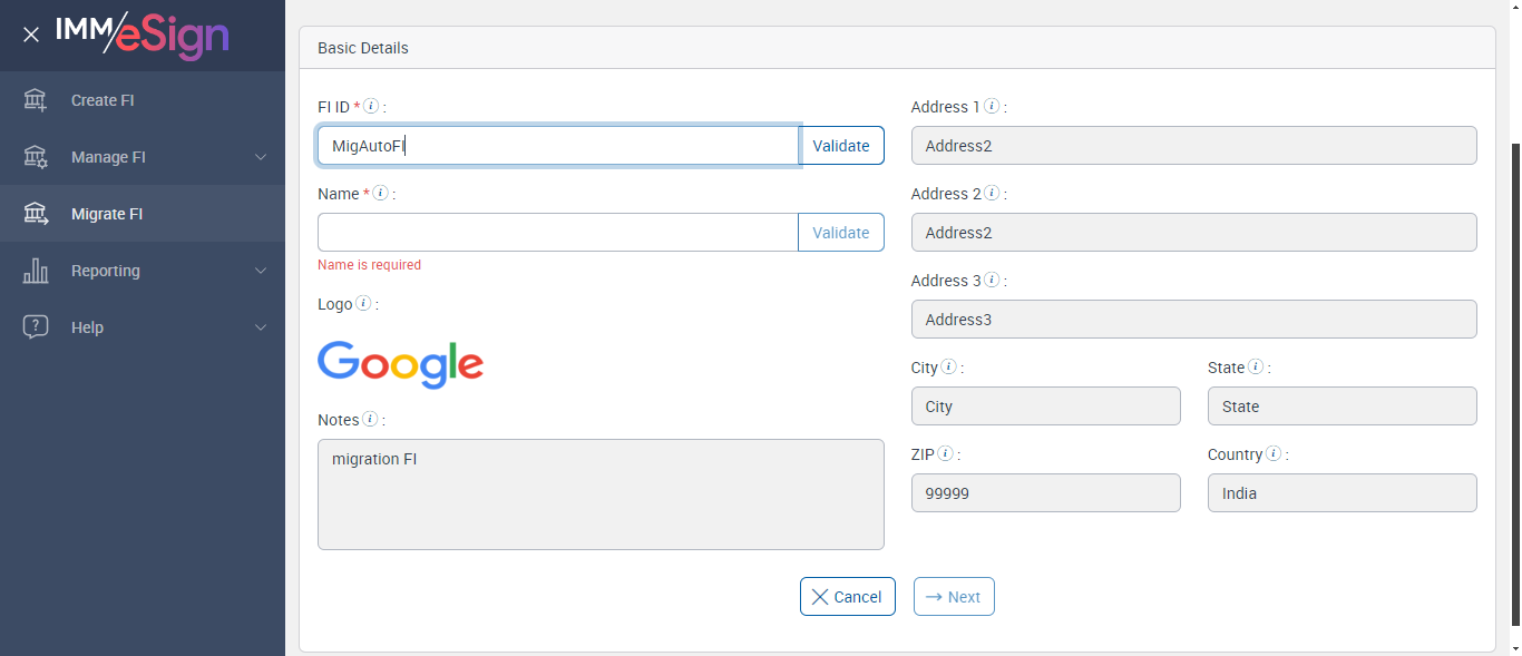 | verifyMigrateFIBasicDetails: Verify Migrate FI Basic Details | |||