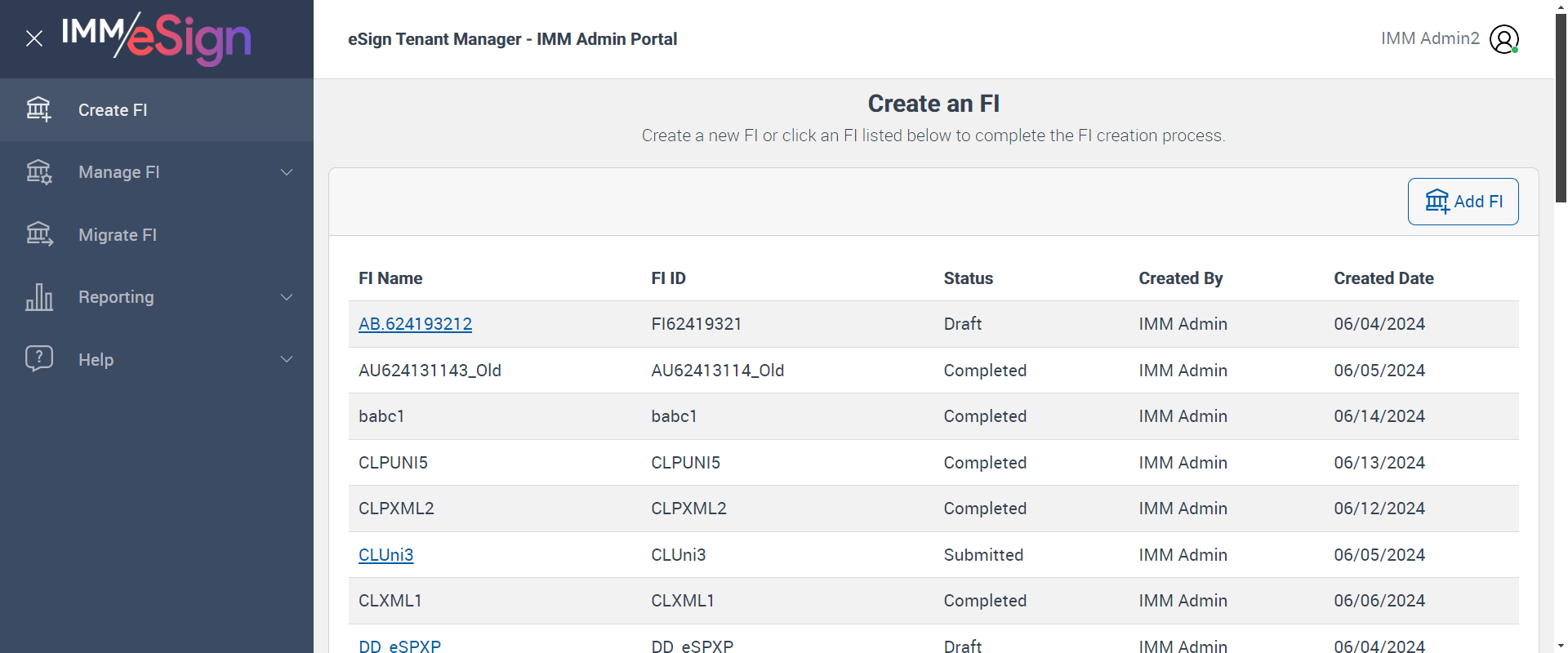Successfully navigated to 'Create an FI' page [ScreenShot]