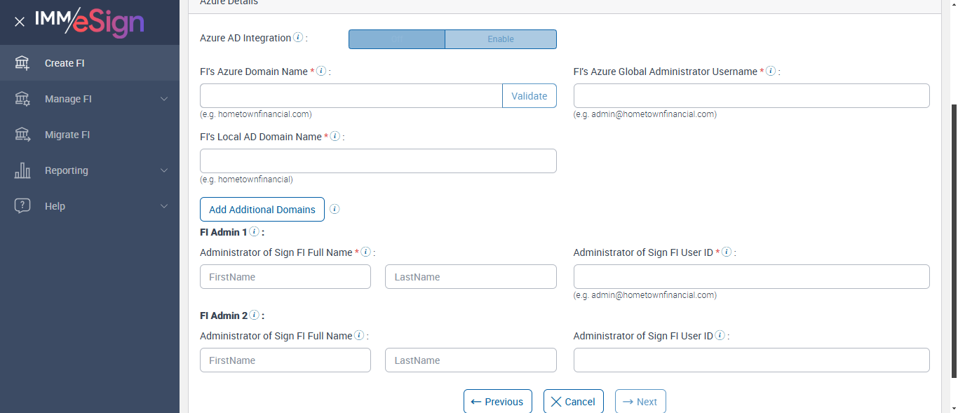 Successfully navigated to 'Create an FI' page [ScreenShot]