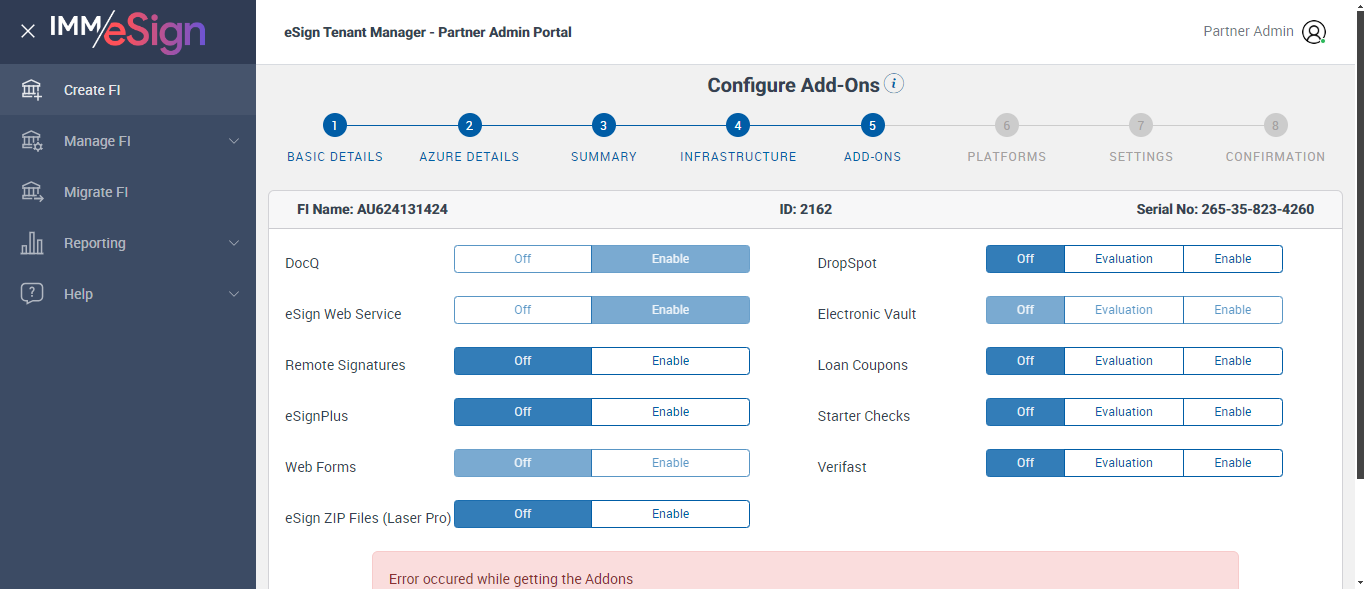 ({ZIP=, Dictionary=TeSign;XPLN;MSP, Description=Verify Migrate FI AddOns Page - PartnerAdmin, Login_User_ID=PartnerAdmin1@immesignqa.onmicrosoft.com, Platform=, ShortName=, Filepath=, Name=AU, LocalDomain=immtestcu, TestID=verifyCloudToCloudMockMigration, Dictionary Code=, LoggedInUser=Partner Admin, createdFIStatus=, Notes=, Session URL=https://esignnonprod.immesign.com/qa/tenantmanager/, GlobalAdmin=cuadmin@immtestcu.onmicrosoft.com, eSign URL=, TypeOfUser=Partner Admin, ErrorMsg=, Address2=, AZDomain=immtestcu.onmicrosoft.com, Address3=, FI_ID=AutoTestFI, Address1=, City=, Dictionary Description=, Logo=, NameDescription=, WrongAZDomain=, Tab=, State=, Login_Password=iMM@2022, FullName=, Country=, Dictionaries To Be Select=, ButtonToClick=, FIID=AU})