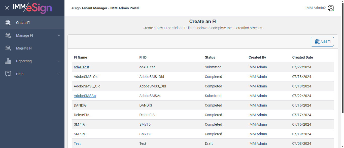 Successfully navigated to 'Create an FI' page [ScreenShot] |