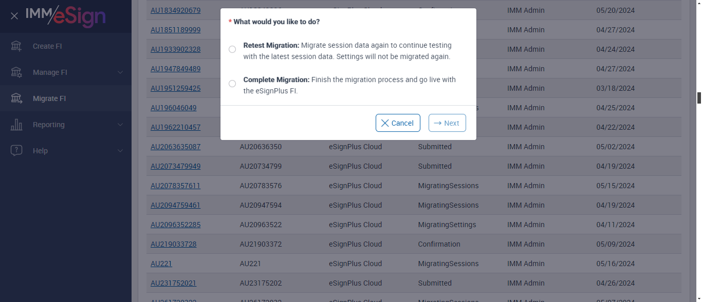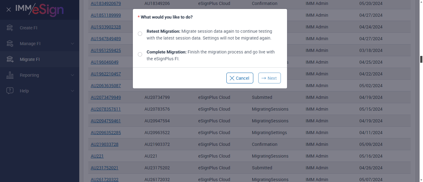 --- 20 May 19:35:24 175 - Page URL:: https://esignnonprod.immesign.com/qa/tenantmanager/#/fi/migrate