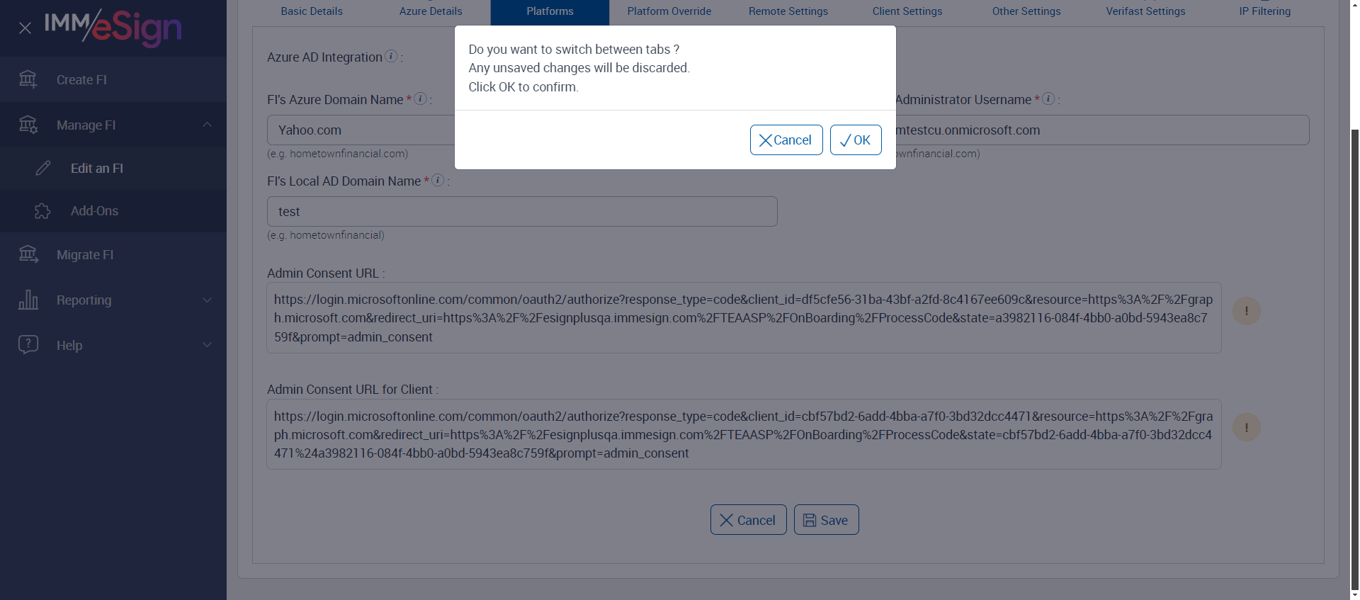 --- 23 May 16:59:40 627 - Page URL:: https://esignnonprod.immesign.com/qa/tenantmanager/#/fi/manage/platforms
