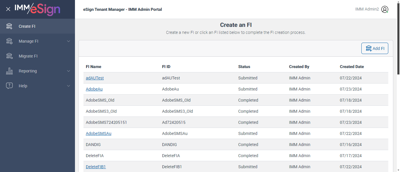 'Search by FI Name/Host FIID' displayed in 'Manage FI' page [ScreenShot]