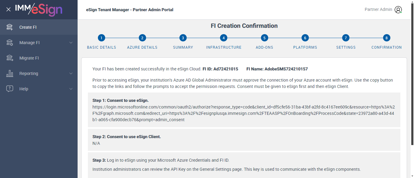 ({ZIP=08867, Dictionary=tesign;xp, StarterEvalDays=, Description=Create New FI Default SMS - Partner Admin, Login_User_ID=PartnerAdmin1@immesignqa.onmicrosoft.com, FiStatus=Submitted, StarterChecks=Off, eSignURL=, E-Vault=Off, Filepath=, Name=AdobeSMS, LocalDomain=cuadmin, TestID=verifycreateNewFIDefaultSMS, Verifast=Off, eSignPlus=Off, LacerPro=Enable, RtmAuthTypes=, Notes=Test, Session URL=https://esignnonprod.immesign.com/qa/tenantmanager/, GlobalAdmin=cuadmin@immtestcu.onmicrosoft.com, RemoteSign=Off, TypeOfUser=, eValultDays=, DrpSpot=Off, ErrorMsg=, Address2=building 1, AZDomain=immtestcu.onmicrosoft.com, Address3=123, VerifastEDays=, Address1=2 City hall Plaza, City=Rahway, WrongAZDomain=, LCEvalDays=, State=NJ, LoanCoupon=Off, Login_Password=iMM@2022, WrongFIID=, DrpEvalDays=, Country=USA, ClientID=12223456asv_, FIID=Ad, Key=Test123})