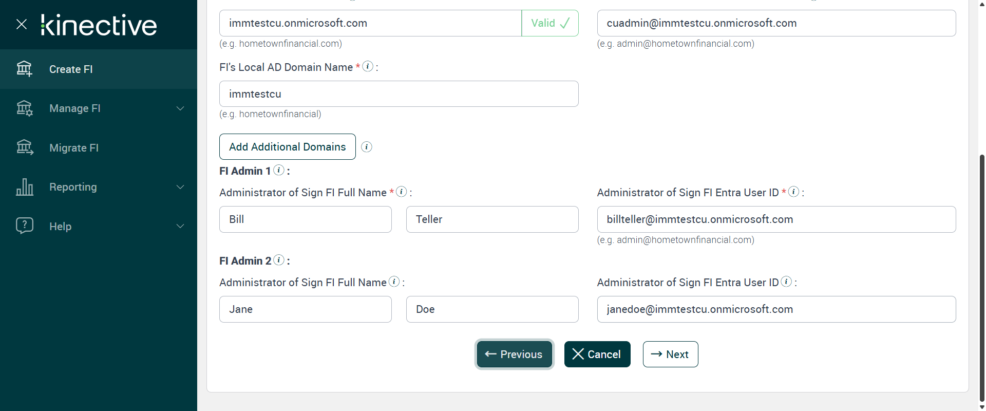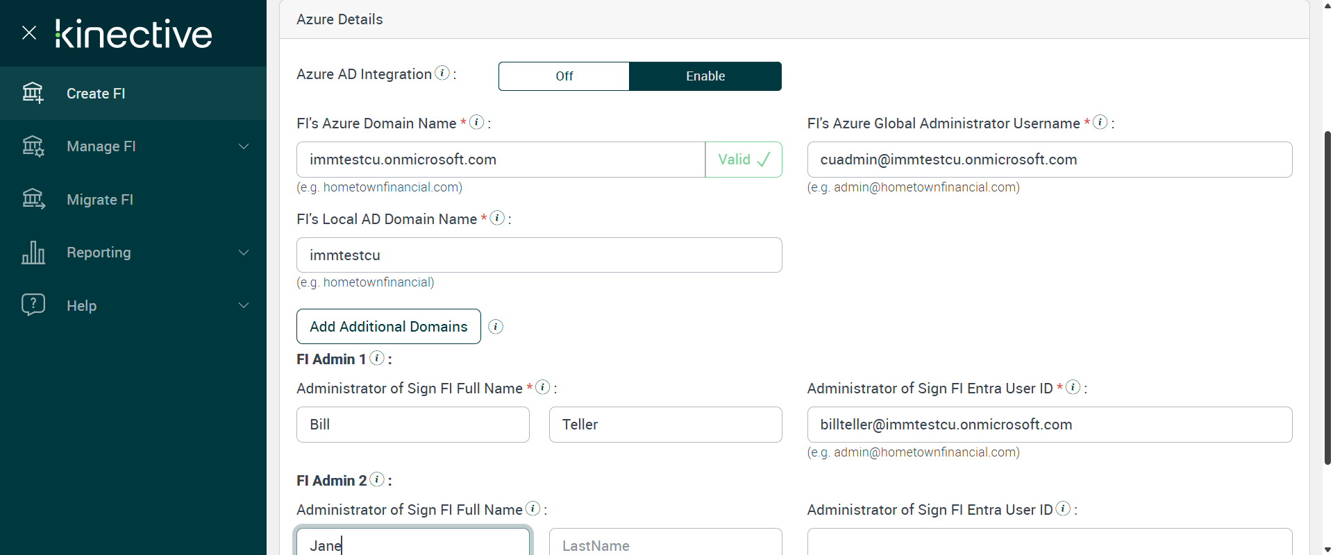 | {ZIP=08867, FiAdmin_FirstName=Bill,Jane, Dictionary=TeSign;XPLN, StarterEvalDays=, Description=Create New FI, Login_User_ID=immadmin2@immesignqa.onmicrosoft.com, FiStatus=Submitted, StarterChecks=Off, eSignURL=, E-Vault=Off, FiAdmin_LastName=Teller,Doe, Filepath=, Name=AB., LocalDomain=immtestcu, TestID=createNewFI, FiAdmin_UserID=billteller@immtestcu.onmicrosoft.com,janedoe@immtestcu.onmicrosoft.com, Verifast=Off, eSignPlus=Off, LacerPro=Enable, RtmAuthTypes=, Notes=Test, Session URL=https://esignnonprod.immesign.com/qa/tenantmanager/, GlobalAdmin=cuadmin@immtestcu.onmicrosoft.com, RemoteSign=Off, TypeOfUser=IMM Admin2, eValultDays=, DrpSpot=Off, ErrorMsg=, Address2=building 1, AZDomain=immtestcu.onmicrosoft.com, Address3=123, VerifastEDays=, Address1=2 City hall Plaza, City=Rahway, WrongAZDomain=, LCEvalDays=, State=NJ, LoanCoupon=Off, Login_Password=iMM@2022, WrongFIID=, DrpEvalDays=, Country=USA, ClientID=3AAABLblqZhCPfuU-npiCakOjy5Ut75_7222WMCDdpSBYYA0z9PZE7hXvVdJDXKIzDh0zkAVwUGLc4pVh3cU31w119aZm6Uu_, FIID=Fi, Key=Test123} |