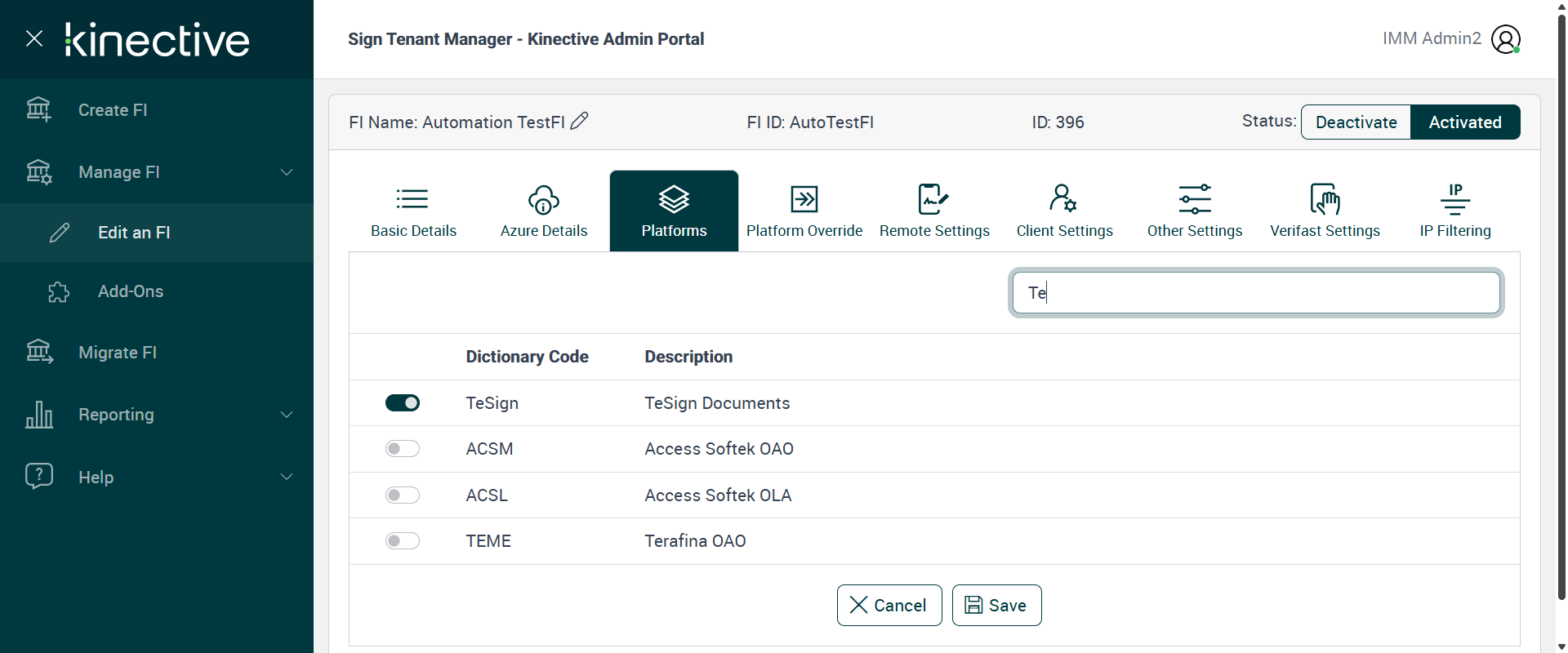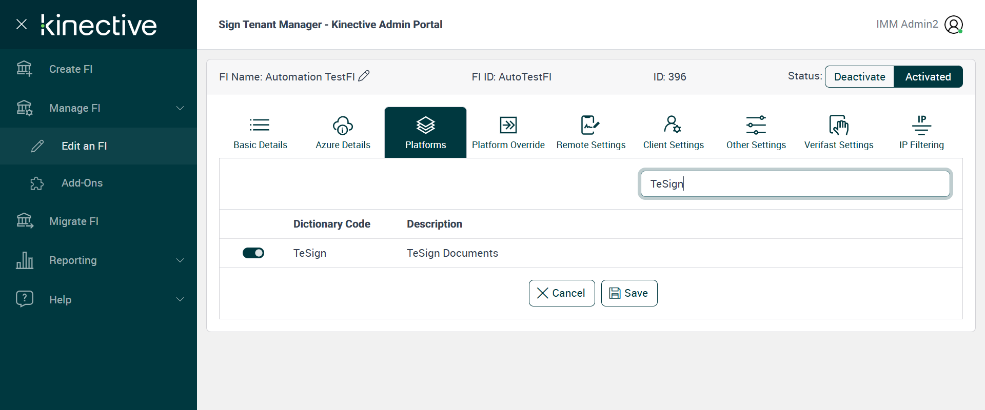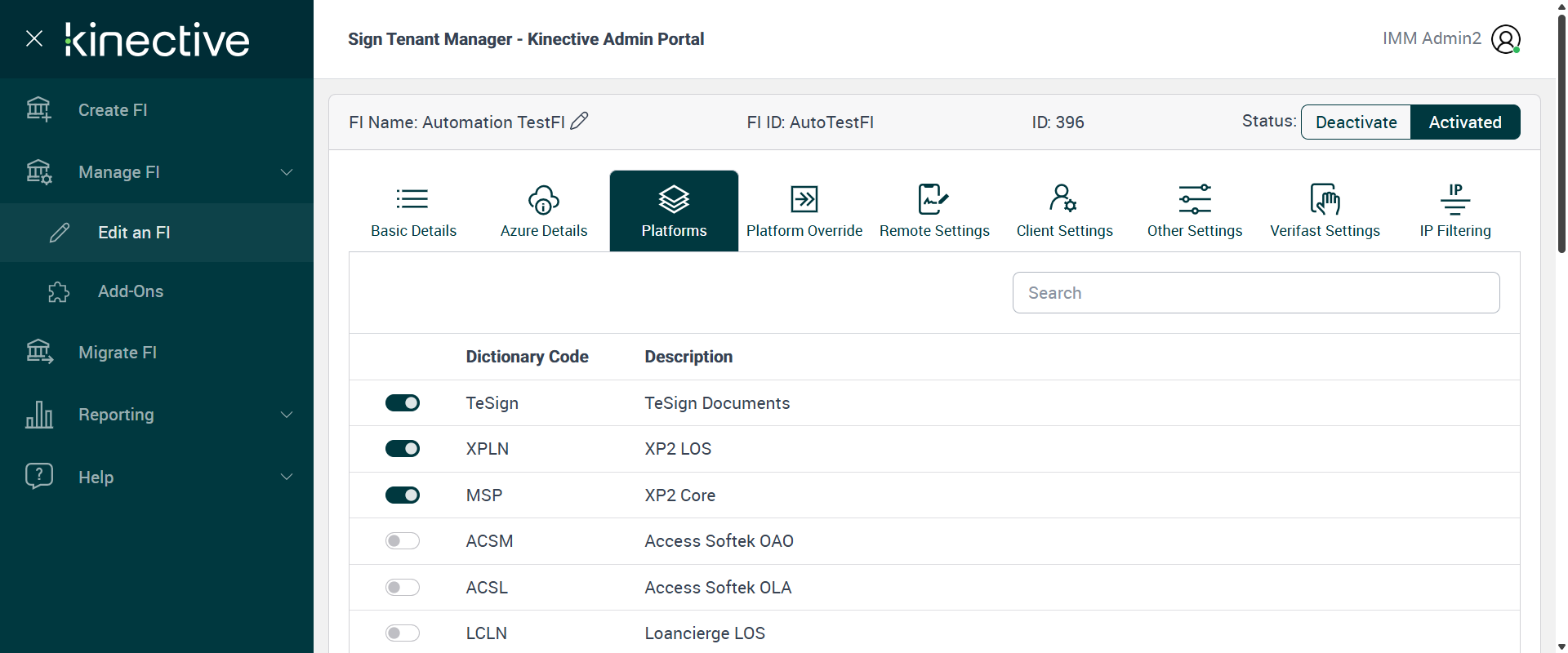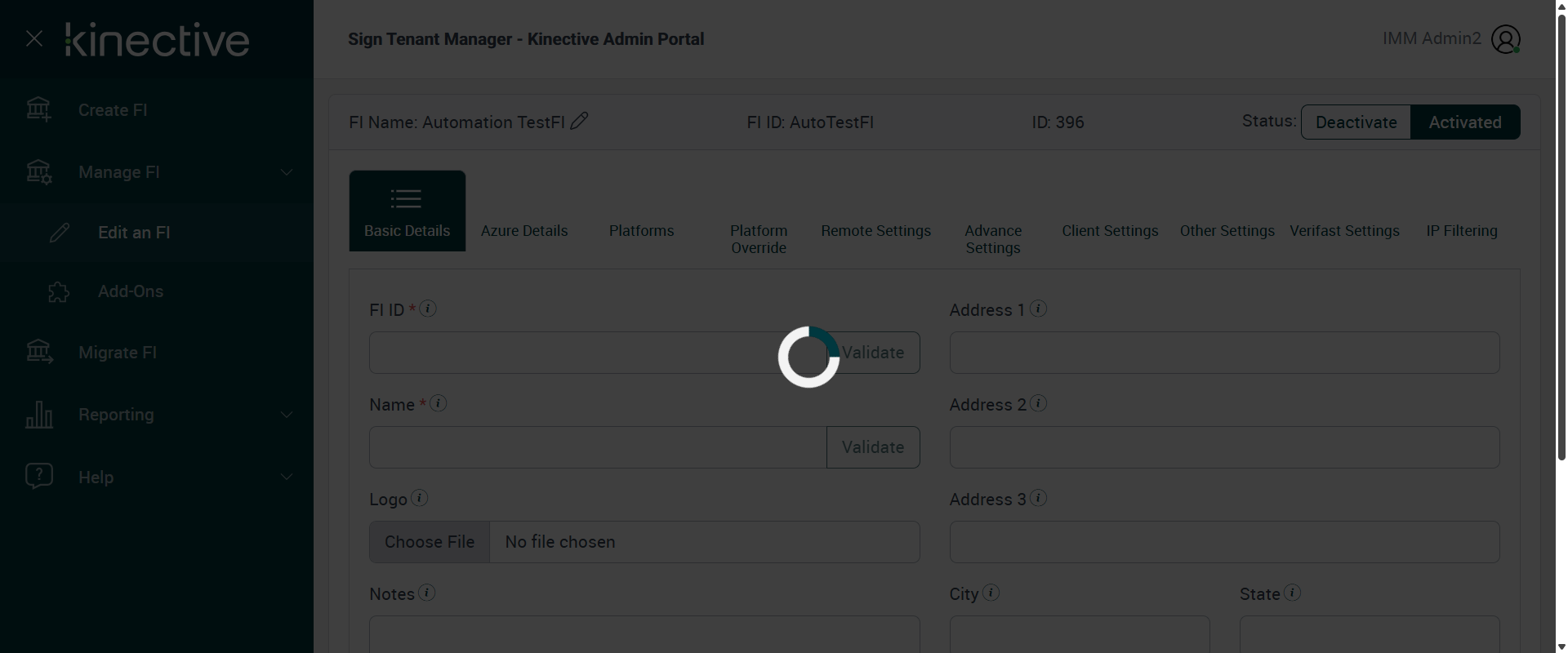 | verifyPlatformSettingsTabs: Inserted FI name - AutoTestFI | |||