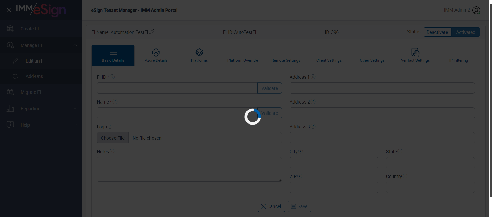 verifyActivateAndDeactivateFI