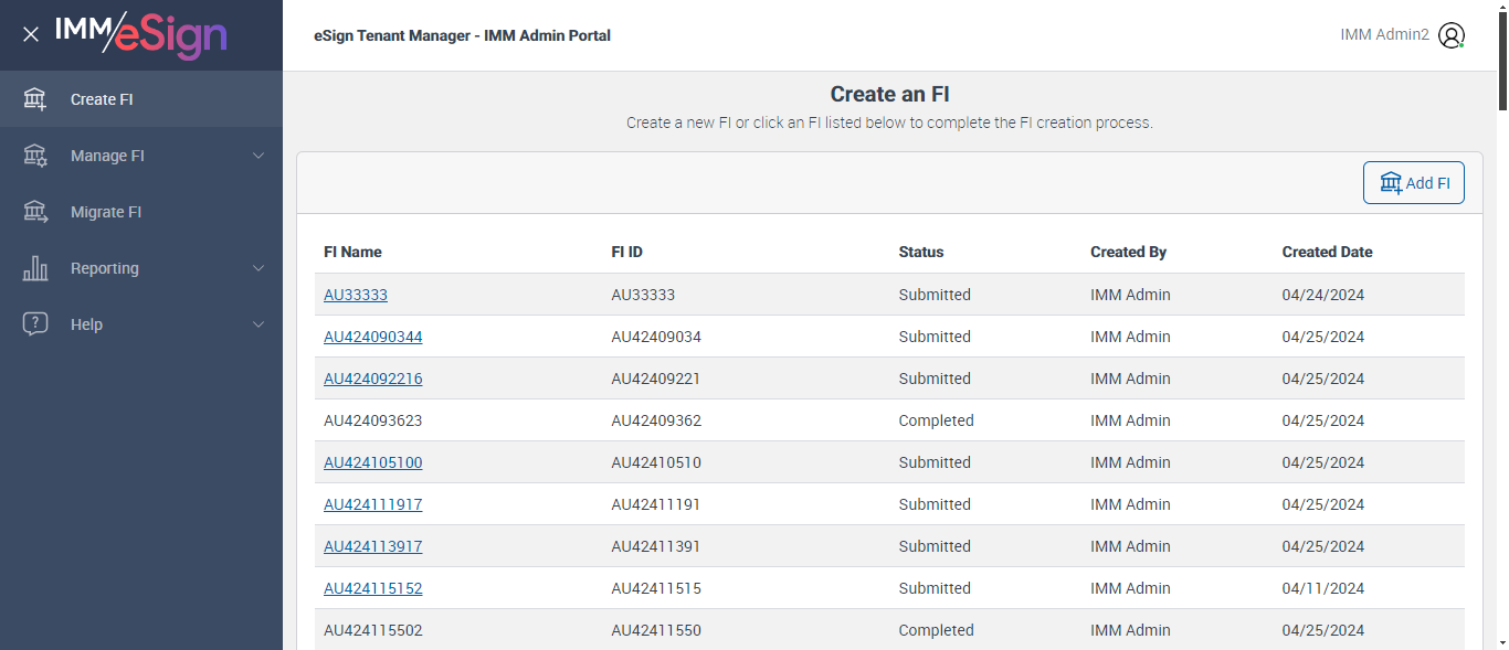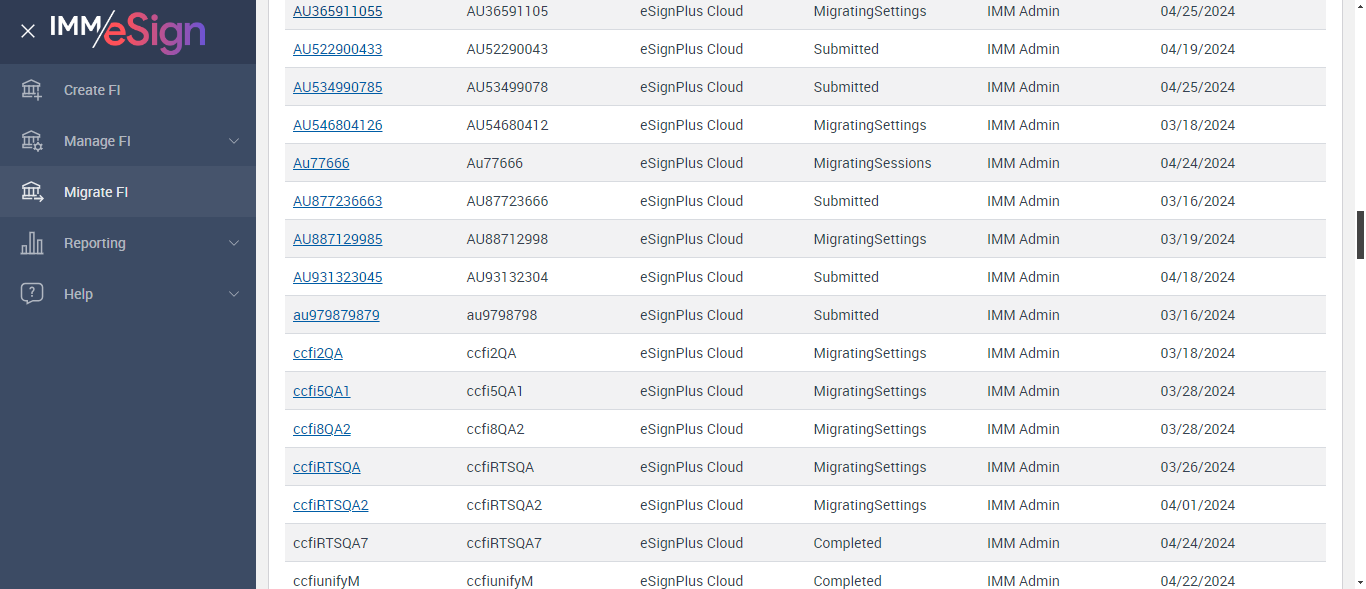 Used to communicate with the eSign server from the client application. Financial Institution's Name.