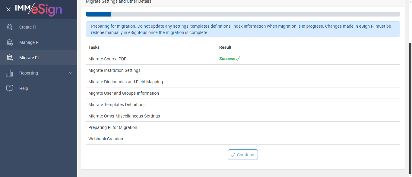 Must be in 99999 or 99999-9999 format.] * * FI ID * : equals FI ID * : Name * : equals Name * : Logo : equals Logo : Notes : equals Notes : Address 1 : equals Address 1 : Address 2 : equals Address 2 : Address 3 : equals Address 3 : City : equals City : State : equals State : ZIP : equals ZIP : Country : equals Country : Successfully validated Basic Details labels [ScreenShot] ...........Migration - Infrastructure Page.............. --- 25 Apr 21:22:17 173 - Element is displayed:: [[RemoteWebDriver: chrome on Windows 10 (48d1214c7bc3135aed7e166add322918)] -> id: btnNext] --- 25 Apr 21:22:19 485 - Page URL:: https://esignnonprod.immesign.com/qa/tenantmanager/#/fi/migrate/basic --- 25 Apr 21:22:19 485 - 0 - Page Load Wait: (Sync) - com.imm.support.Utils.waitForPageLoad(Utils.java:136) --- 25 Apr 21:22:19 572 - Page URL:: https://esignnonprod.immesign.com/qa/tenantmanager/#/fi/migrate/basic --- 25 Apr 21:22:19 573 - 0 - Page Load Wait: (Sync) - com.imm.support.Utils.waitForPageLoad(Utils.java:136) --- 25 Apr 21:22:20 816 - Element is displayed:: [[RemoteWebDriver: chrome on Windows 10 (48d1214c7bc3135aed7e166add322918)] -> xpath: //*[contains(text(),'Configure Infrastructure')]] --- 25 Apr 21:22:20 879 - Page URL:: https://esignnonprod.immesign.com/qa/tenantmanager/#/fi/migrate/infrastructure --- 25 Apr 21:22:20 880 - 0 - Page Load Wait: (Sync) - com.imm.support.Utils.waitForPageLoad(Utils.java:136) --- 25 Apr 21:22:20 957 - Element is displayed:: [[RemoteWebDriver: chrome on Windows 10 (48d1214c7bc3135aed7e166add322918)] -> css selector: .header] Successfully navigated to the 'InfrastructurePage' page [ScreenShot] --- 25 Apr 21:22:21 205 - Element is displayed:: [[RemoteWebDriver: chrome on Windows 10 (48d1214c7bc3135aed7e166add322918)] -> id: infraMessage] Verified Configuration message Continue button is disabled Found Result for Setting up the Database - Success [ScreenShot] Successfully Configured 'Setting up the Databse' FoundResult for Configuring the FI Database -Success [ScreenShot] Successfully Configured 'Configuring the FI Database' Found Result for Running Post Deployment ScriptsSuccess [ScreenShot] Successfully Configured 'Running Post Deployment Scripts' Found Result for Creating FI SettingsSuccess [ScreenShot] Successfully Configured 'Creating FI Settings' Found Result fotr Creating folders in Azure file storageSuccess [ScreenShot] Successfully Configured 'Creating folders in Azure file storage' Found Result for Scheduling JobsSuccess [ScreenShot] Successfully Configured 'Scheduling Jobs' Retry Button is not showing --- 25 Apr 21:25:36 116 - Element is displayed:: [[RemoteWebDriver: chrome on Windows 10 (48d1214c7bc3135aed7e166add322918)] -> id: btnCompleteInfra] --- 25 Apr 21:25:43 293 - Element is displayed:: [[RemoteWebDriver: chrome on Windows 10 (48d1214c7bc3135aed7e166add322918)] -> id: btnCompleteInfra] --- 25 Apr 21:25:43 360 - Element is displayed:: [[RemoteWebDriver: chrome on Windows 10 (48d1214c7bc3135aed7e166add322918)] -> id: btnCompleteInfra] --- 25 Apr 21:25:43 533 - Page URL:: https://esignnonprod.immesign.com/qa/tenantmanager/#/fi/migrate/addons --- 25 Apr 21:25:43 533 - 0 - Page Load Wait: (Sync) - com.imm.support.Utils.waitForPageLoad(Utils.java:136) --- 25 Apr 21:25:43 594 - Element is displayed:: [[RemoteWebDriver: chrome on Windows 10 (48d1214c7bc3135aed7e166add322918)] -> id: step_title] --- 25 Apr 21:25:43 679 - Page URL:: https://esignnonprod.immesign.com/qa/tenantmanager/#/fi/migrate/addons --- 25 Apr 21:25:43 679 - 0 - Page Load Wait: (Sync) - com.imm.support.Utils.waitForPageLoad(Utils.java:136) --- 25 Apr 21:25:43 754 - Element is displayed:: [[RemoteWebDriver: chrome on Windows 10 (48d1214c7bc3135aed7e166add322918)] -> css selector: .header] Clicked 'Next' button .......Migration - Add-Ons Page.......... --- 25 Apr 21:25:43 864 - Page URL:: https://esignnonprod.immesign.com/qa/tenantmanager/#/fi/migrate/addons --- 25 Apr 21:25:43 864 - 0 - Page Load Wait: (Sync) - com.imm.support.Utils.waitForPageLoad(Utils.java:136) --- 25 Apr 21:25:43 915 - Element is displayed:: [[RemoteWebDriver: chrome on Windows 10 (48d1214c7bc3135aed7e166add322918)] -> id: step_title] --- 25 Apr 21:25:43 997 - Page URL:: https://esignnonprod.immesign.com/qa/tenantmanager/#/fi/migrate/addons --- 25 Apr 21:25:43 997 - 0 - Page Load Wait: (Sync) - com.imm.support.Utils.waitForPageLoad(Utils.java:136) --- 25 Apr 21:25:44 073 - Element is displayed:: [[RemoteWebDriver: chrome on Windows 10 (48d1214c7bc3135aed7e166add322918)] -> css selector: .header] Successfully navigated to the 'Add-Ons Page' page [ScreenShot] --- 25 Apr 21:25:46 522 - Page URL:: https://esignnonprod.immesign.com/qa/tenantmanager/#/fi/migrate --- 25 Apr 21:25:46 522 - 0 - Page Load Wait: (Sync) - com.imm.support.Utils.waitForPageLoad(Utils.java:136) --- 25 Apr 21:25:46 584 - Element is displayed:: [[RemoteWebDriver: chrome on Windows 10 (48d1214c7bc3135aed7e166add322918)] -> id: btnMigrateFI] --- 25 Apr 21:25:46 655 - Page URL:: https://esignnonprod.immesign.com/qa/tenantmanager/#/fi/migrate --- 25 Apr 21:25:46 655 - 0 - Page Load Wait: (Sync) - com.imm.support.Utils.waitForPageLoad(Utils.java:136) --- 25 Apr 21:25:46 725 - Element is displayed:: [[RemoteWebDriver: chrome on Windows 10 (48d1214c7bc3135aed7e166add322918)] -> css selector: .header] --- 25 Apr 21:25:46 791 - Page URL:: https://esignnonprod.immesign.com/qa/tenantmanager/#/fi/migrate --- 25 Apr 21:25:46 791 - 0 - Page Load Wait: (Sync) - com.imm.support.Utils.waitForPageLoad(Utils.java:136) Successfully validated Migrated fi status is : Submitted [ScreenShot] --- 25 Apr 21:25:51 285 - Page URL:: https://esignnonprod.immesign.com/qa/tenantmanager/#/fi/migrate --- 25 Apr 21:25:51 286 - 0 - Page Load Wait: (Sync) - com.imm.support.Utils.waitForPageLoad(Utils.java:136) --- 25 Apr 21:25:51 609 - Page URL:: https://esignnonprod.immesign.com/qa/tenantmanager/#/fi/migrate --- 25 Apr 21:25:51 609 - 0 - Page Load Wait: (Sync) - com.imm.support.Utils.waitF