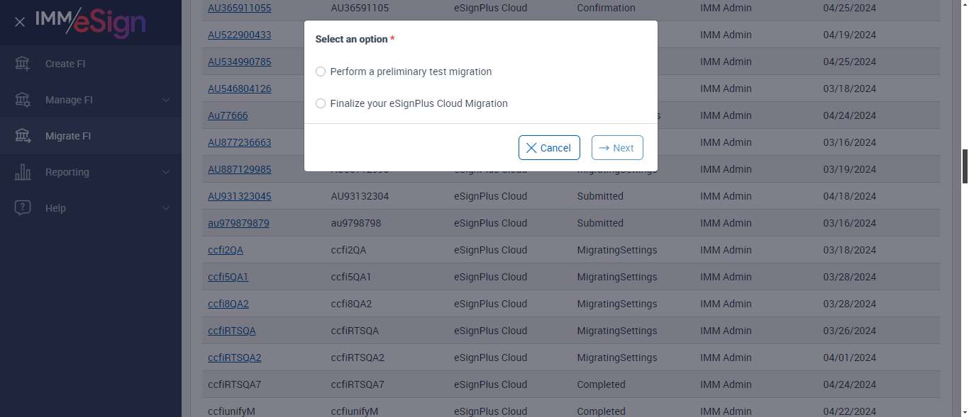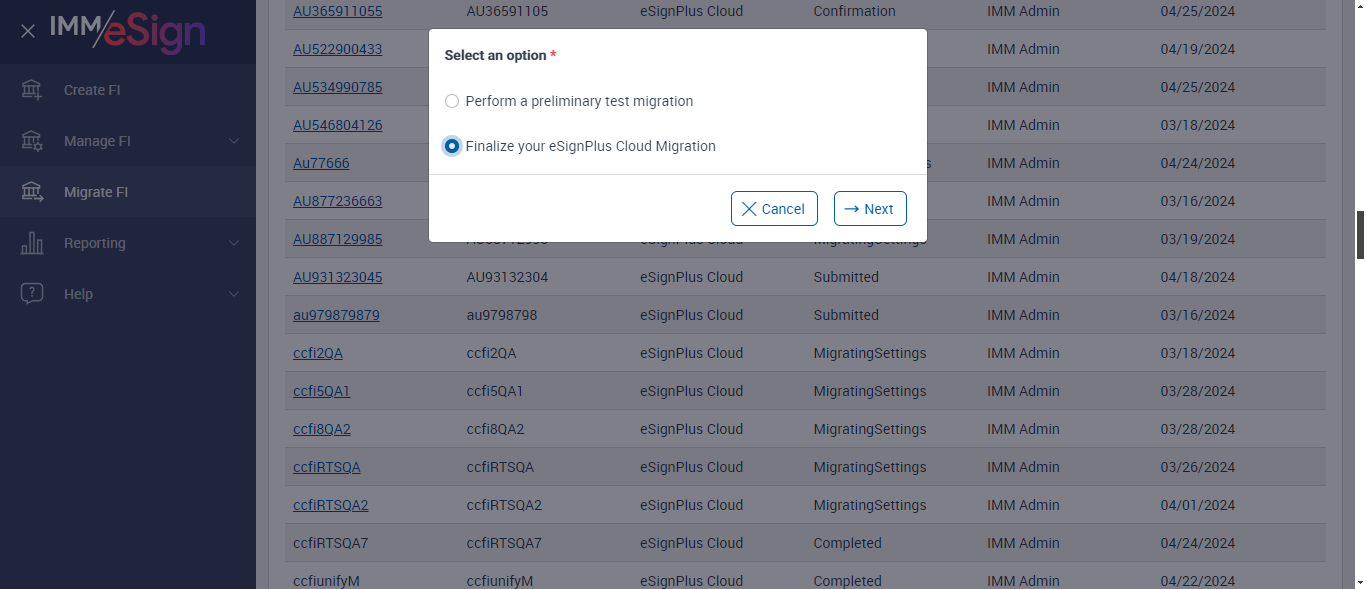 | com.imm.testscripts.MigrateFI.MigrateFi | verifyCloudToCloudFinalMigration: verify Cloud To Cloud Final Migration | 1714059748688 | 1939467 |