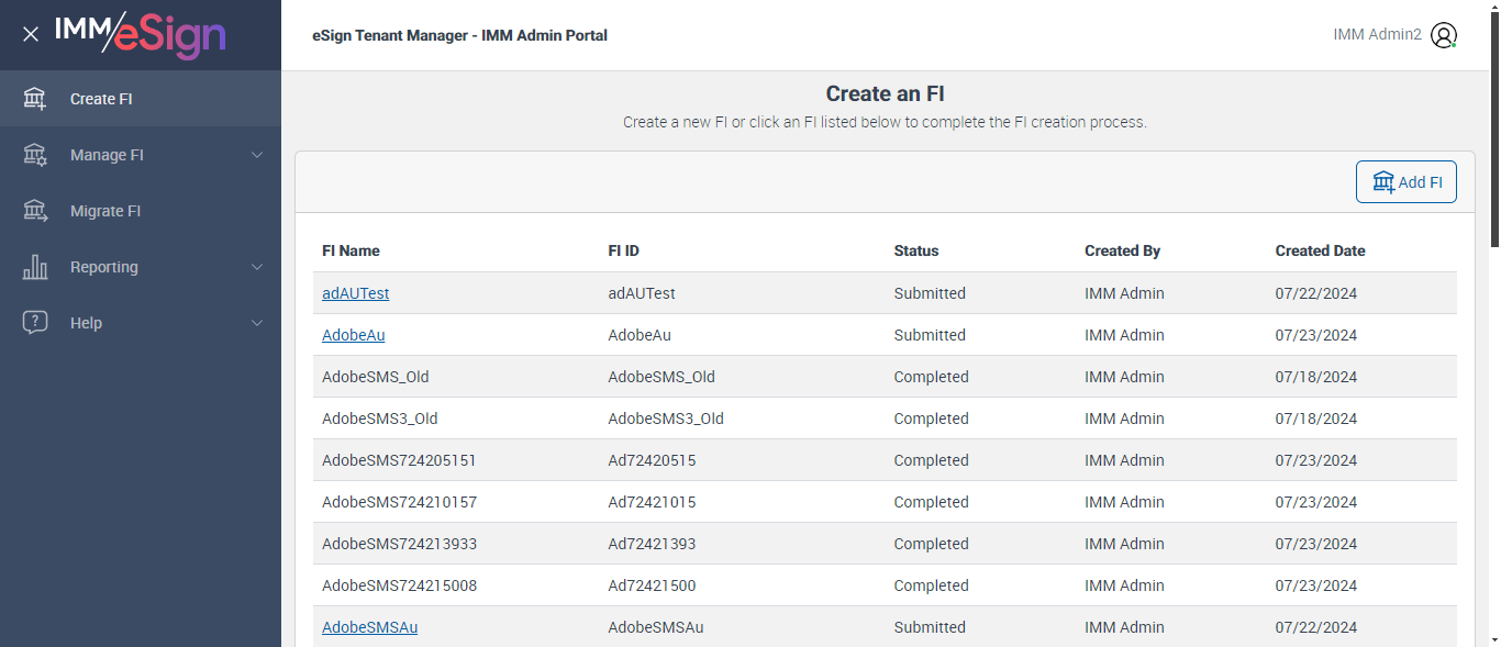 Successfully navigated to 'Create an FI' page [ScreenShot] |