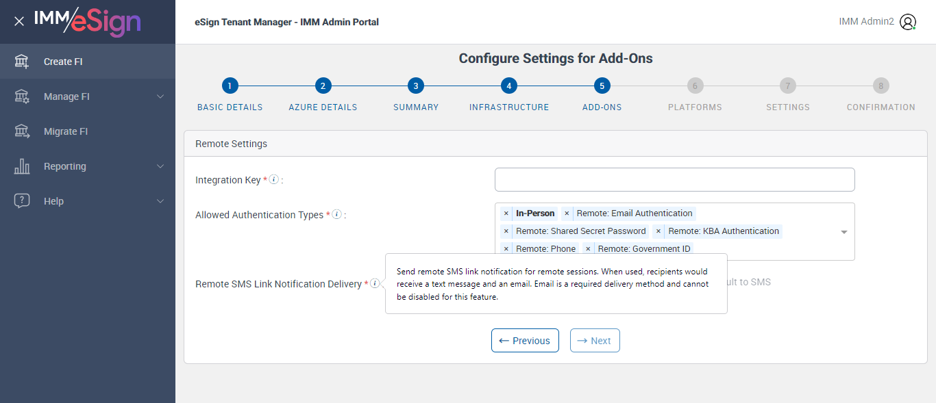 Labels [Integration Key * :, Allowed Authentication Types * :, Remote SMS Link Notification Delivery * :] |