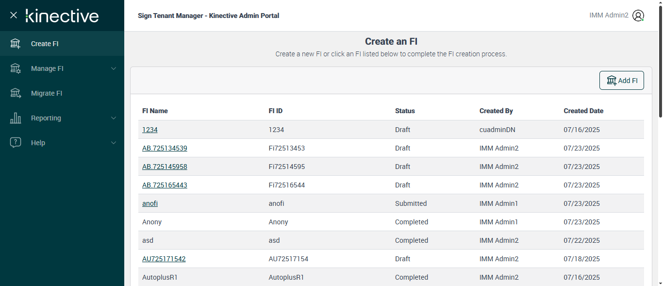 Successfully navigated to 'Create an FI' page [ScreenShot] |
