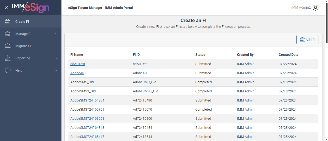 'Search by FI Name/Host FIID' displayed in 'Manage FI' page [ScreenShot]
